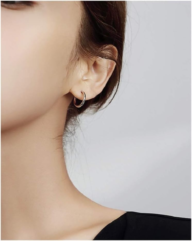как выглядит 14K Gold Plated Hoop Earrings for Women, 4 Pairs Sterling Silver Post Small H... фото