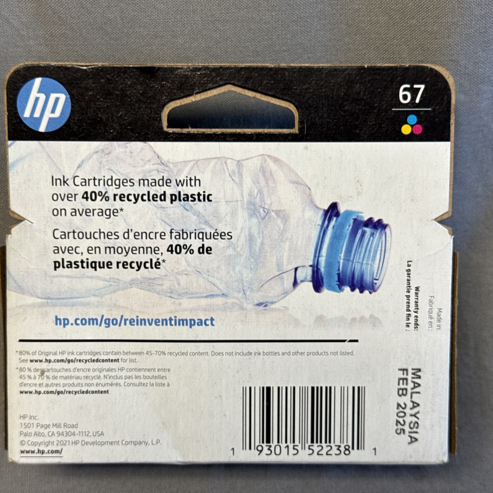 как выглядит HP 67 3YM58AN Tri Color Cyan Magenta YelIow Ink Cartridge Genuine FEB/2025 фото