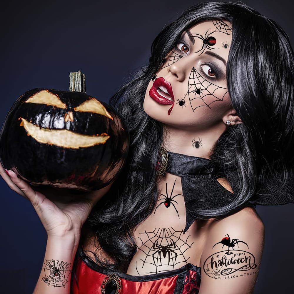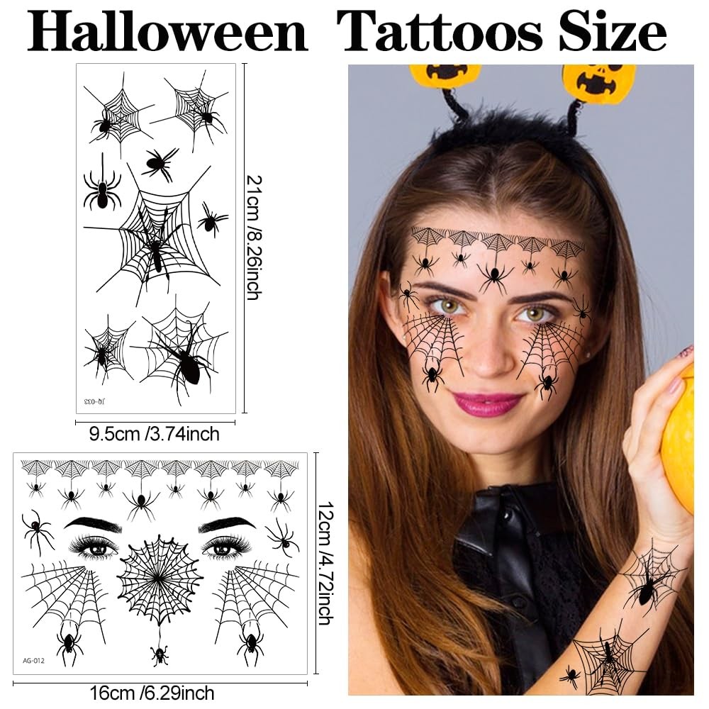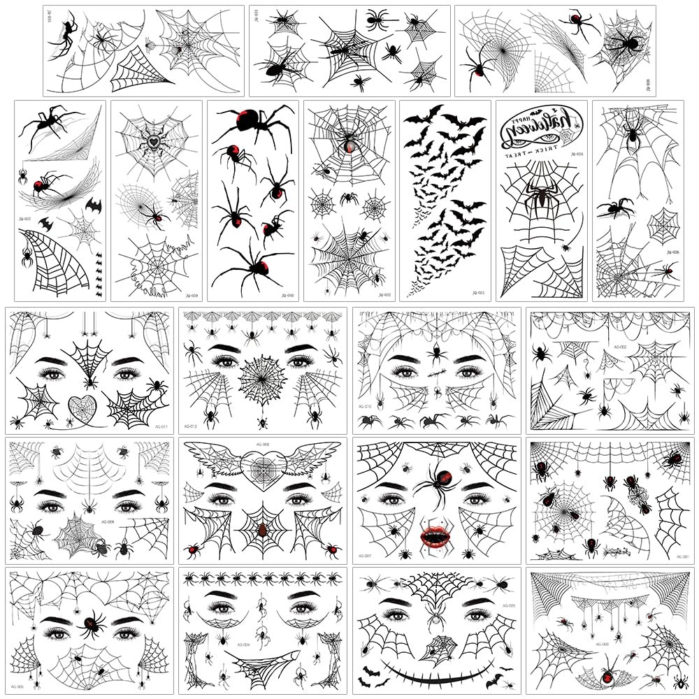 FANOST 22 Halloween Spider Face Temporary Tattoos Kids Adults Cosplay Stickers