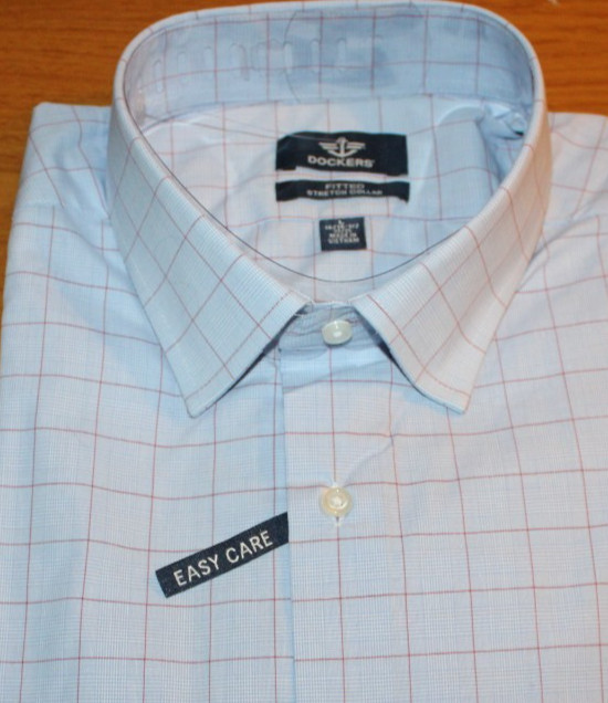 Dockers Men's Easy Care Windowpane Dress Shirt Light Blue Red Grid NWT Sz L 16