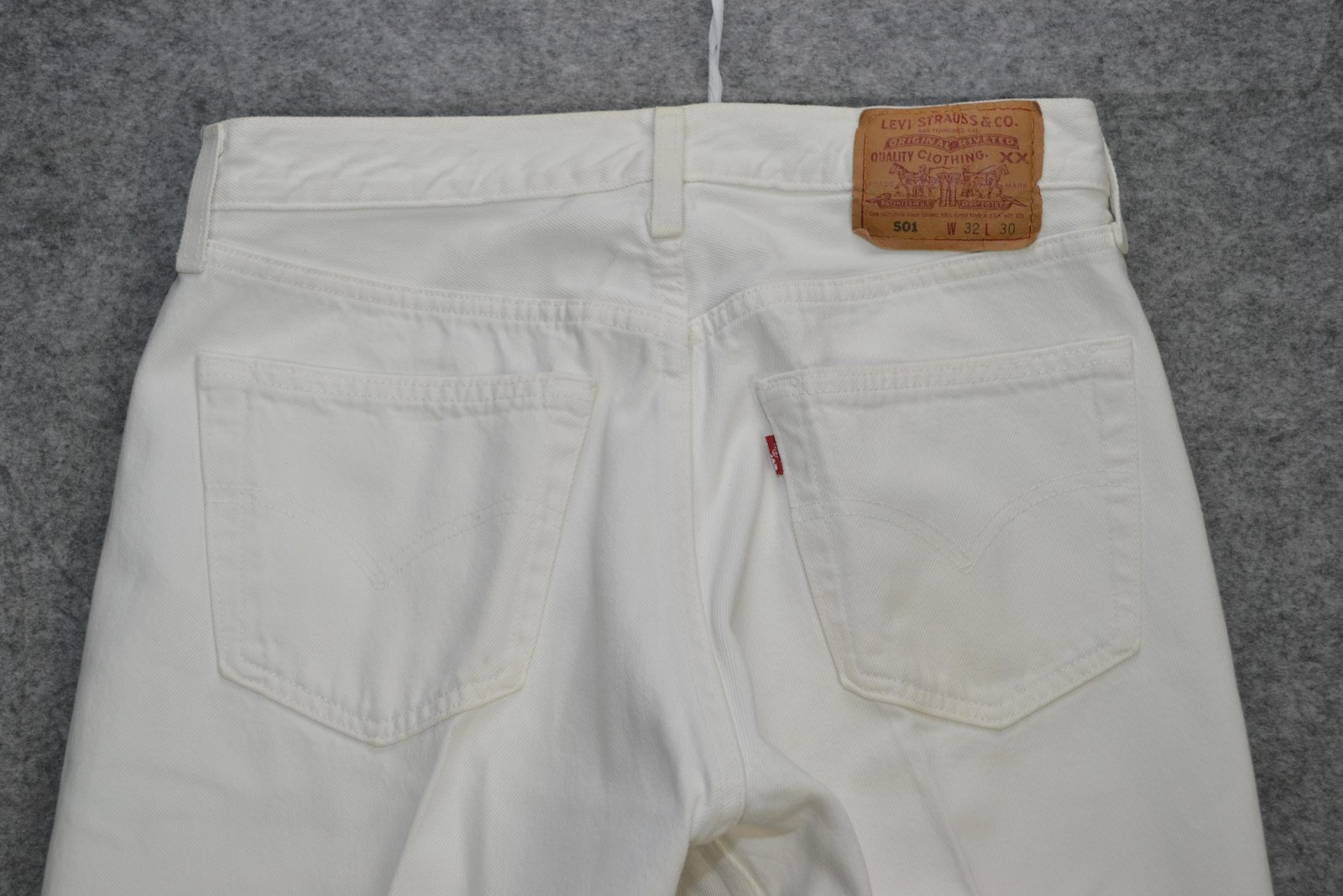 как выглядит VTG Levis 501 Jeans Men 30x29 White Button Fly USA Denim Red Tab 90s Tag 32x30 фото