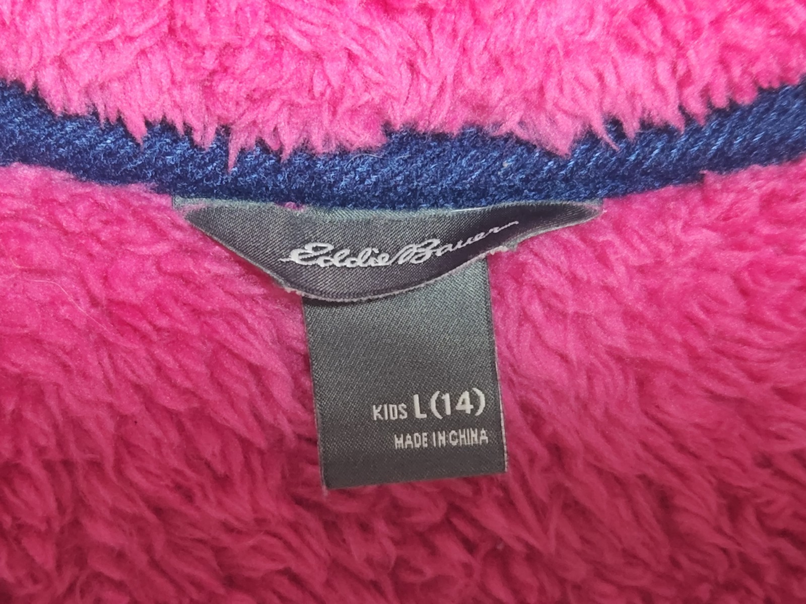 Eddie Bauer Jacket Youth Girls Sz L 14 Pink Blue Fleece Full Zip Fuzzy Sherpa