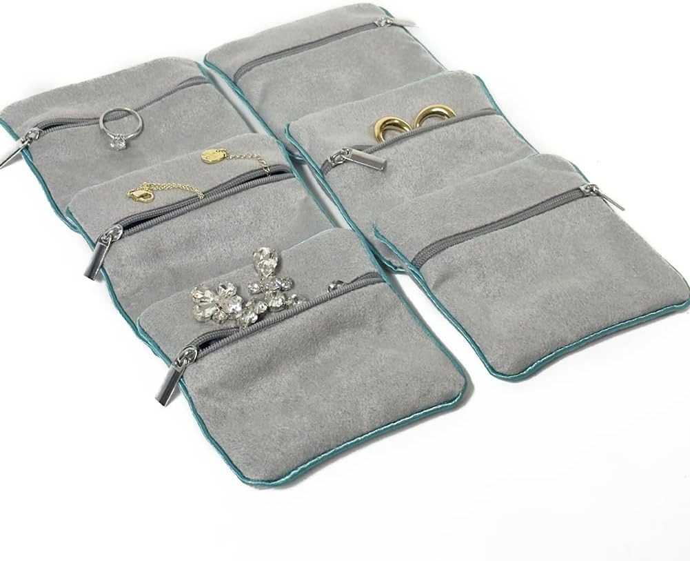 6-Piece Padded Velvet Jewelry Pouch with Zipper - Portable Storage Bag for Trave
