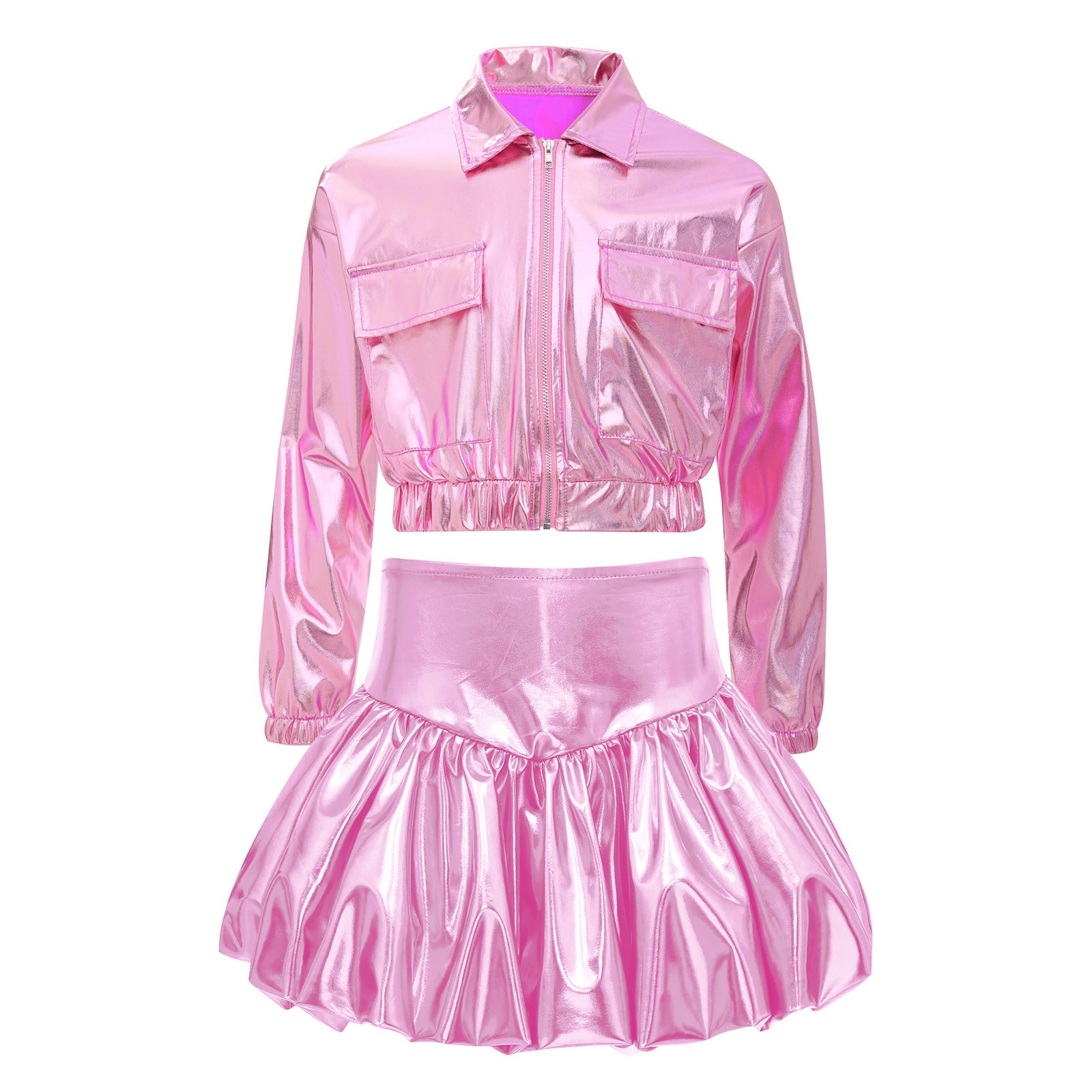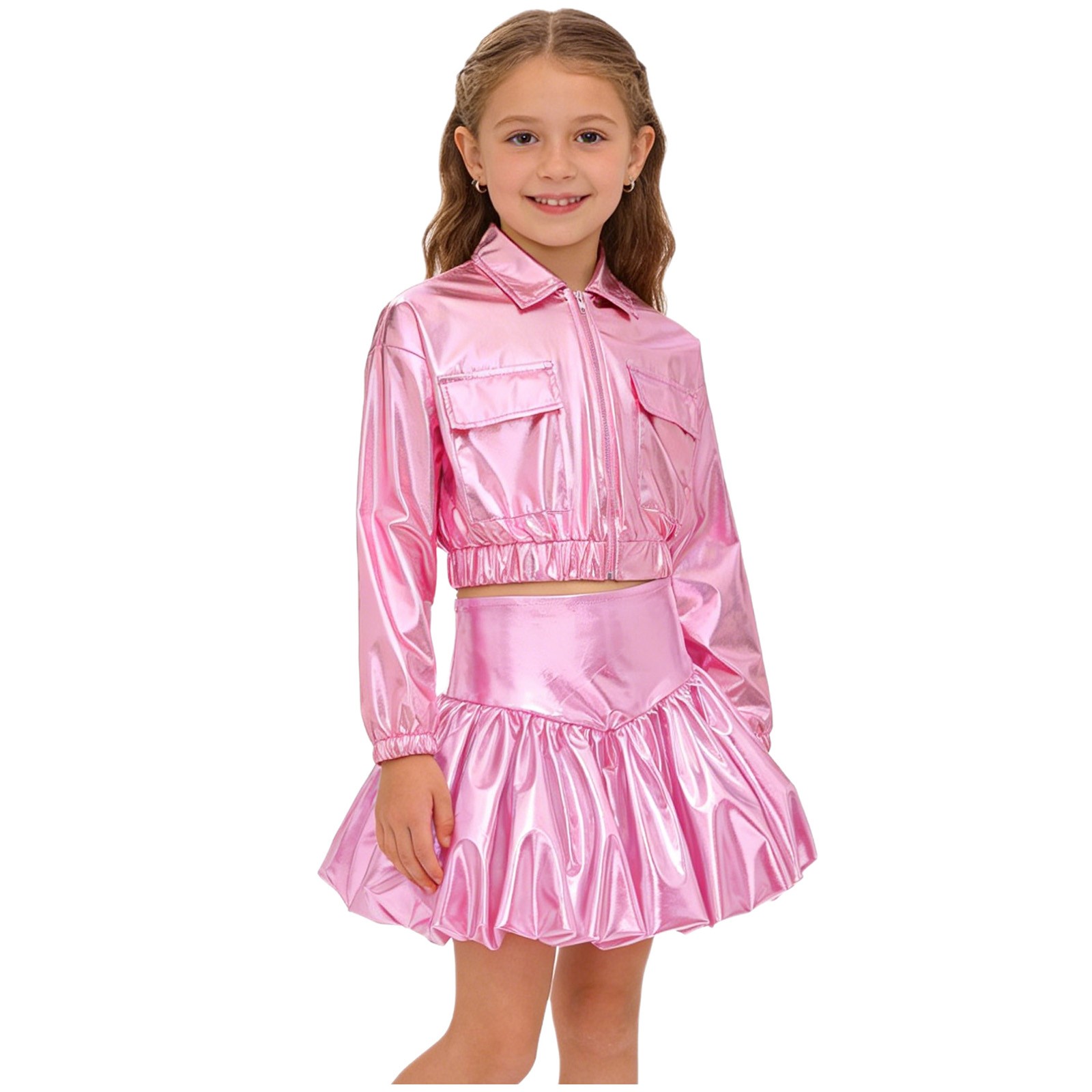 Kids Girls Costume Ballroom Set Crop Top Outfits Bubble Skirt Dancewear Disco