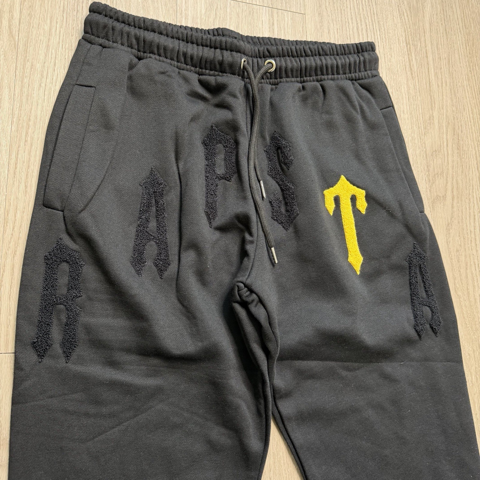 Trapstar Tracksuit Set XL Black Yellow Chenille Logo Hoodie Sweatpants