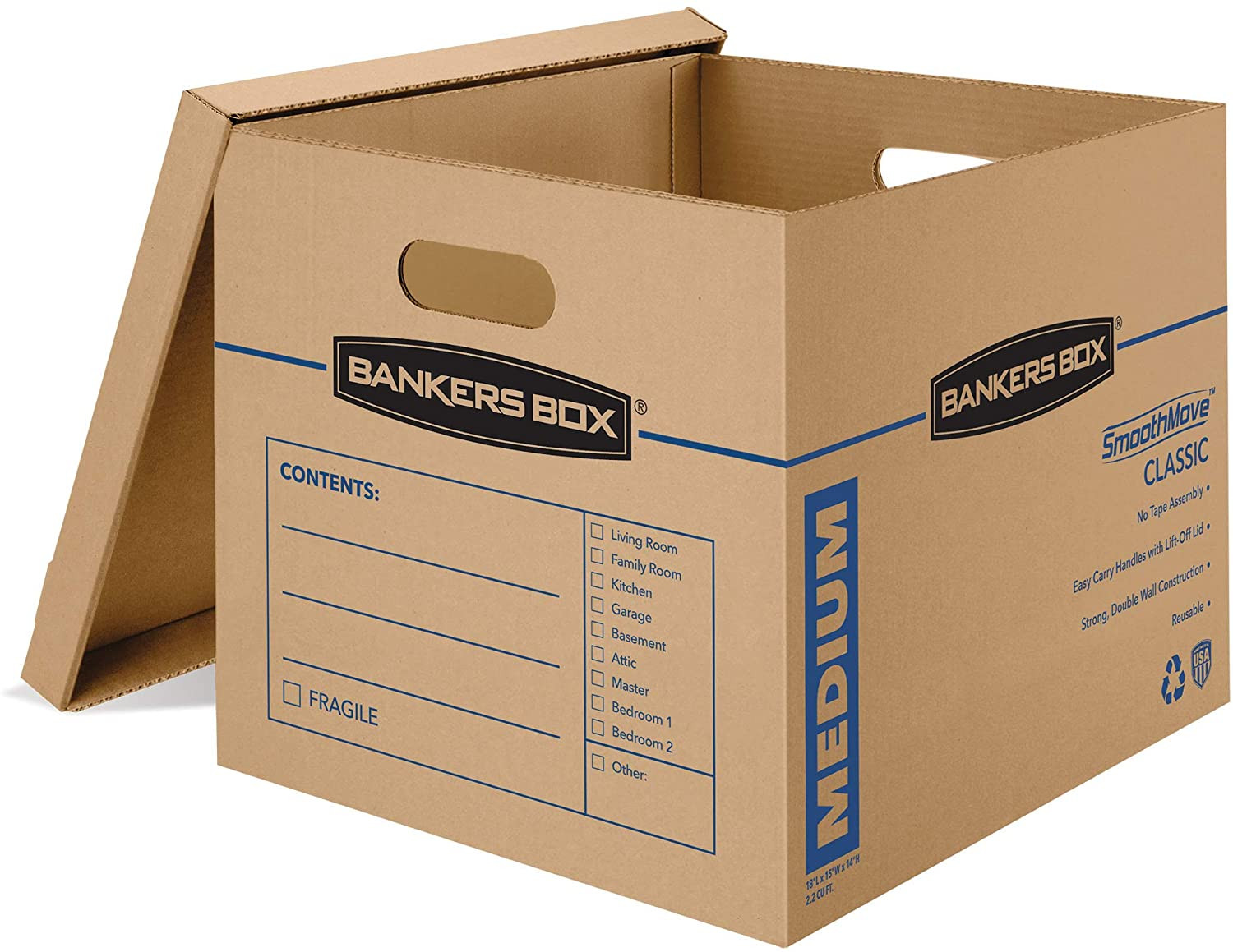 Medium Classic Moving Box 20 Pack, Reinforced Handles, Tape-Free Assembly, Box w
