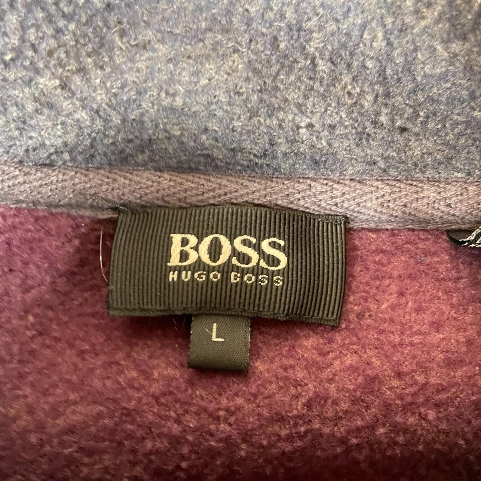 как выглядит VTG Hugo Boss Sweatshirt Mens L Purple Quarter Zip Fleece Embroidered Spell Out фото