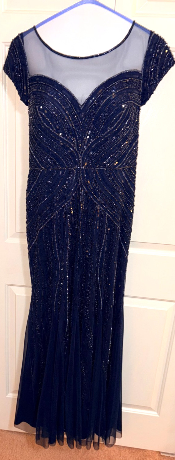 как выглядит Adrianna Papell Beaded Navy Gown Sz 14 Mother of Bride Elegant Wedding Dress фото
