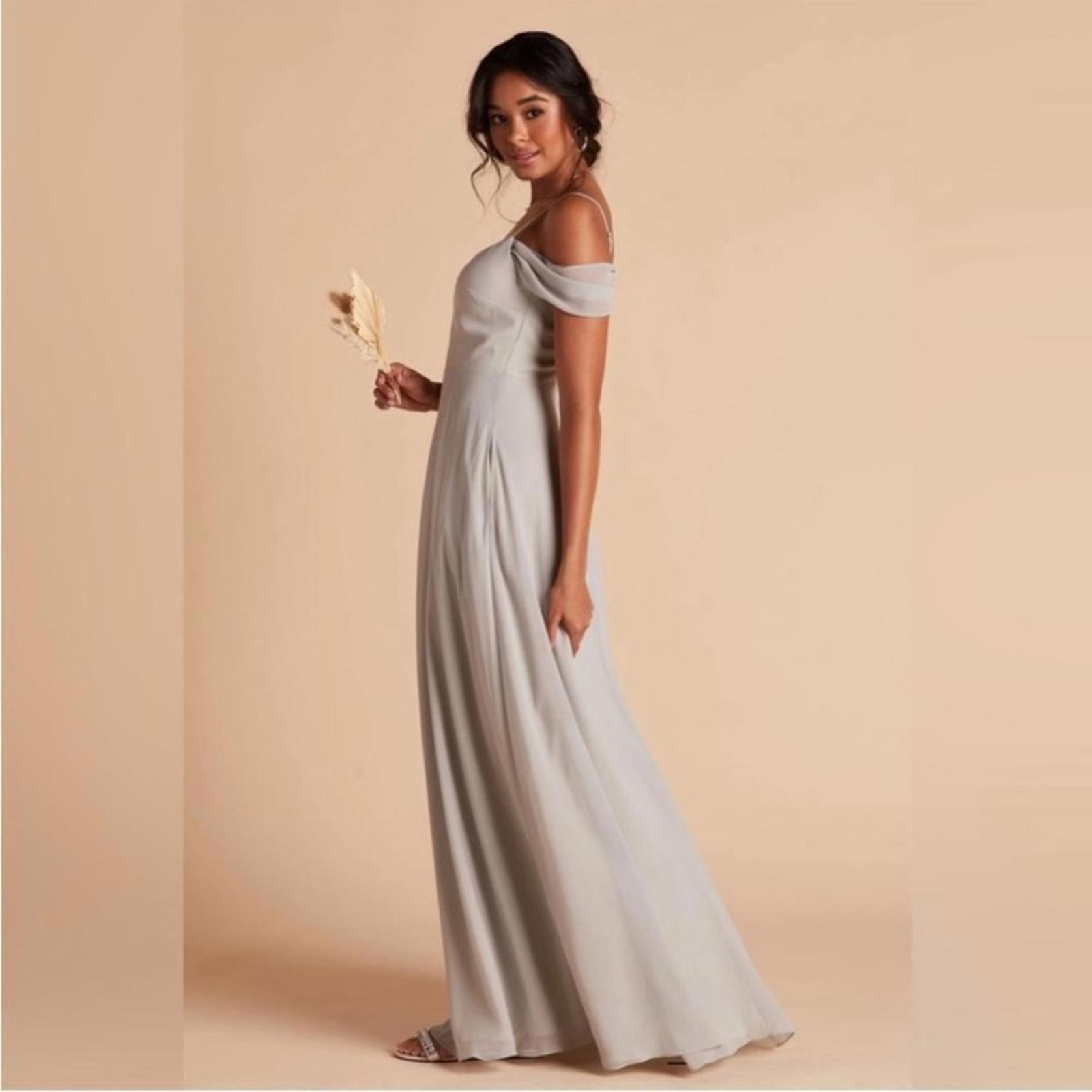 как выглядит Birdy Grey Dove Gray Bridesmaid Maxi Dress XS Off Shoulder Slit NWT фото