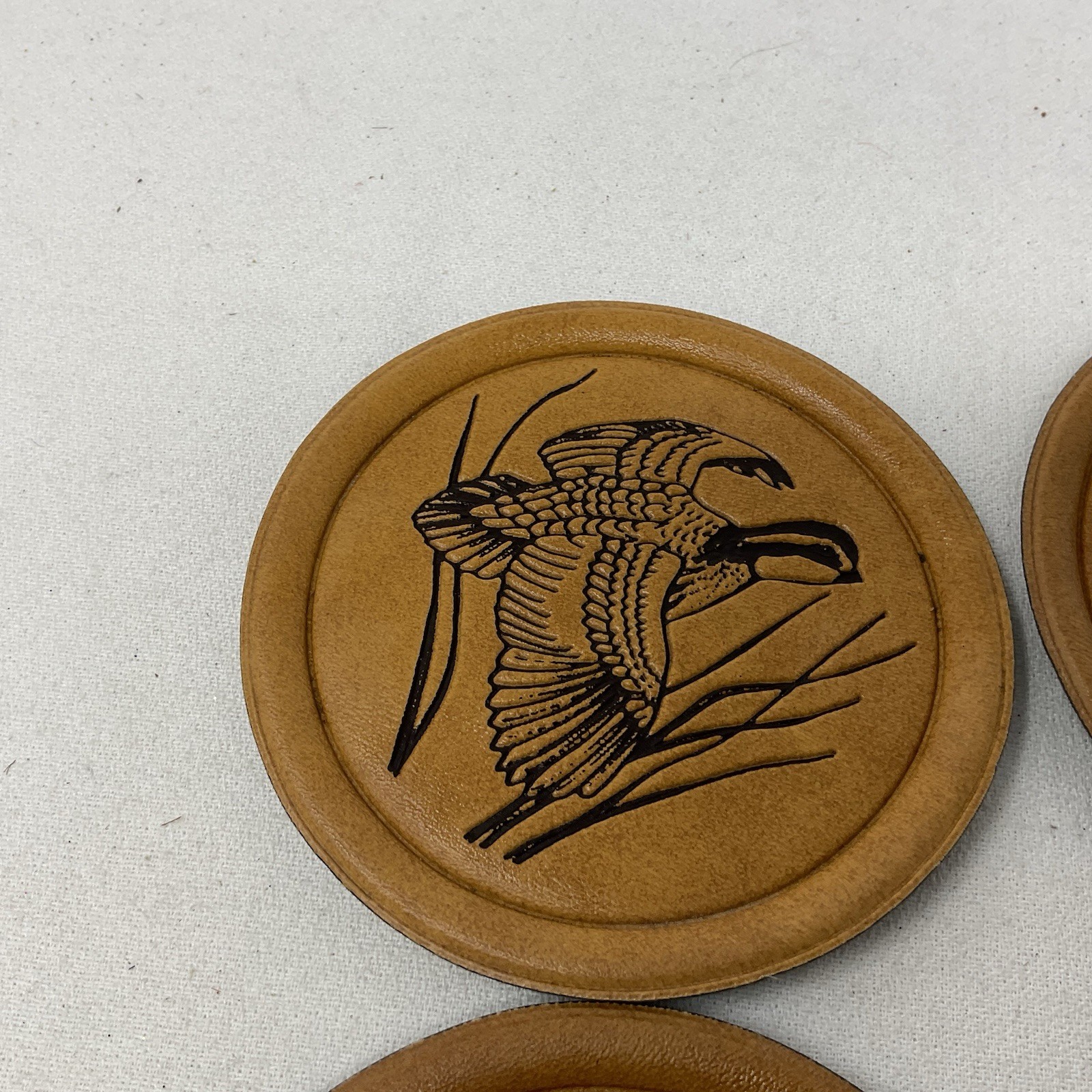 Lot of 4 Leather Like Round Coasters With Felt Backing