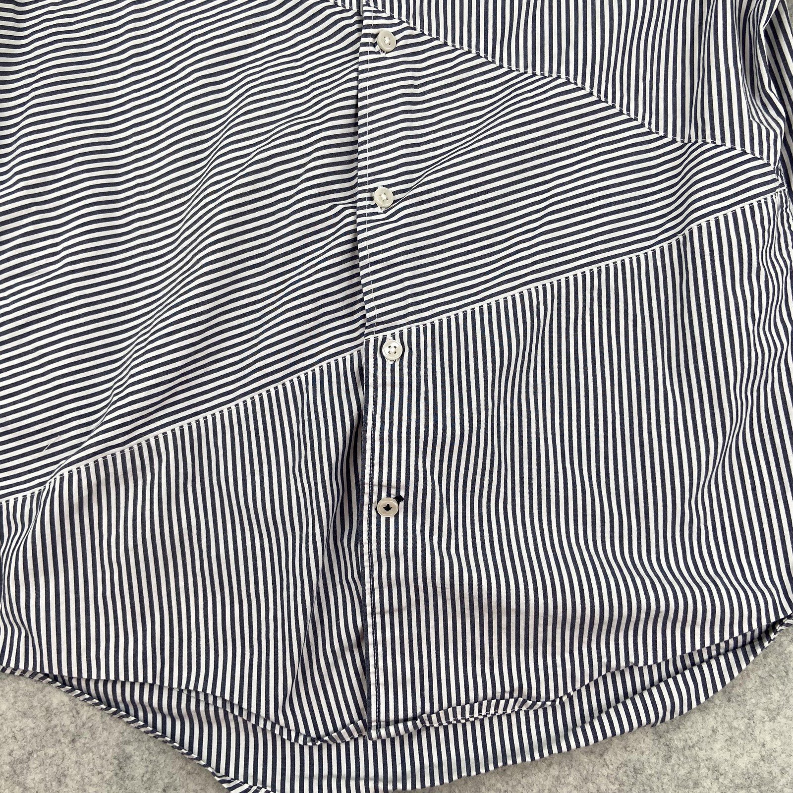 как выглядит Tommy Hilfiger Shirt Mens Medium Blue Striped Slim Fit Short Sleeve Button Up фото