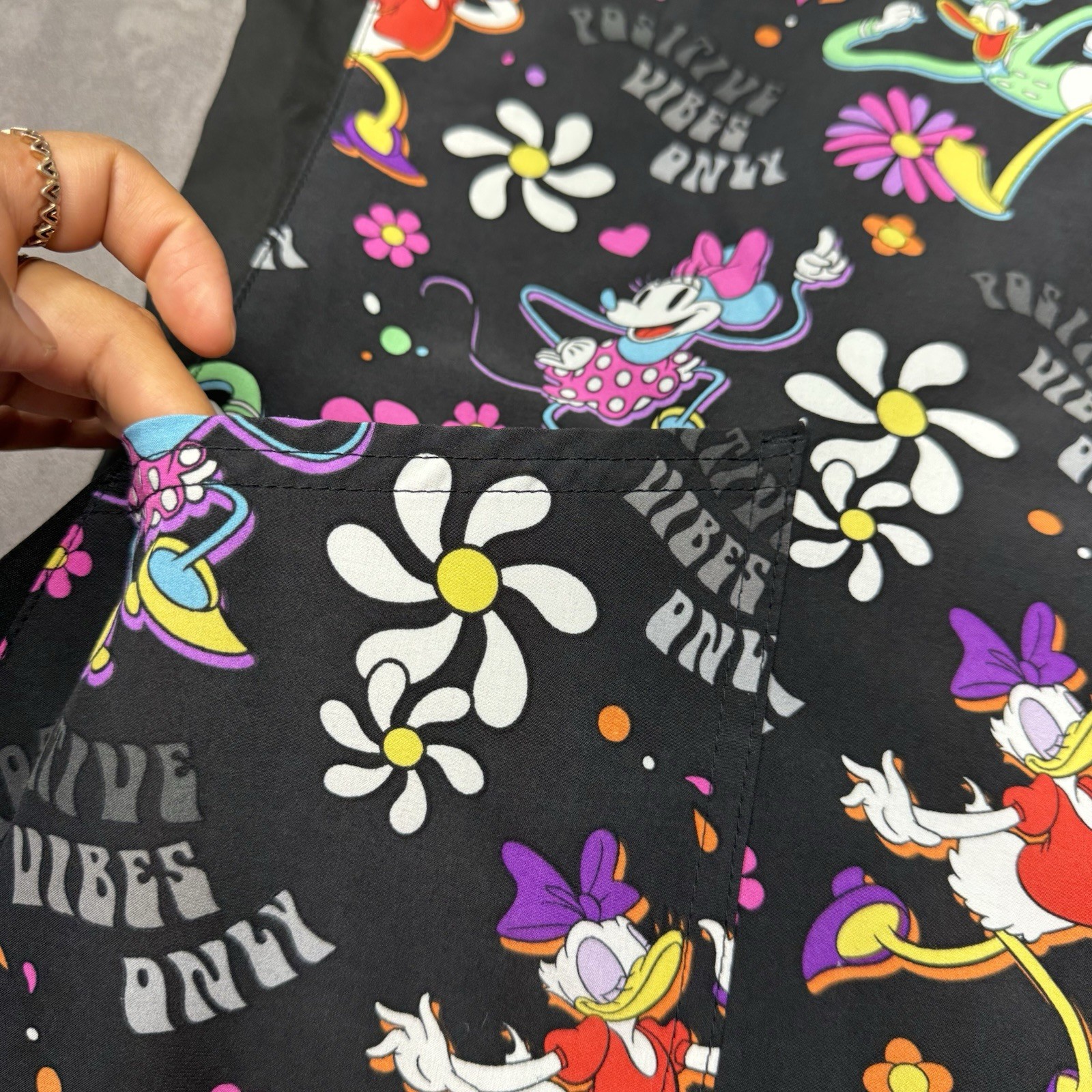 Disney Women's Black Multicolor Scrub Top Short Sleeve Mickey Minnie women s L