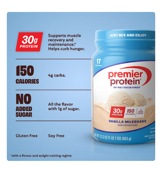 Premier Protein 100 Whey Protein Powder, Vanilla Milkshake, 30g Protein, 23.3 o