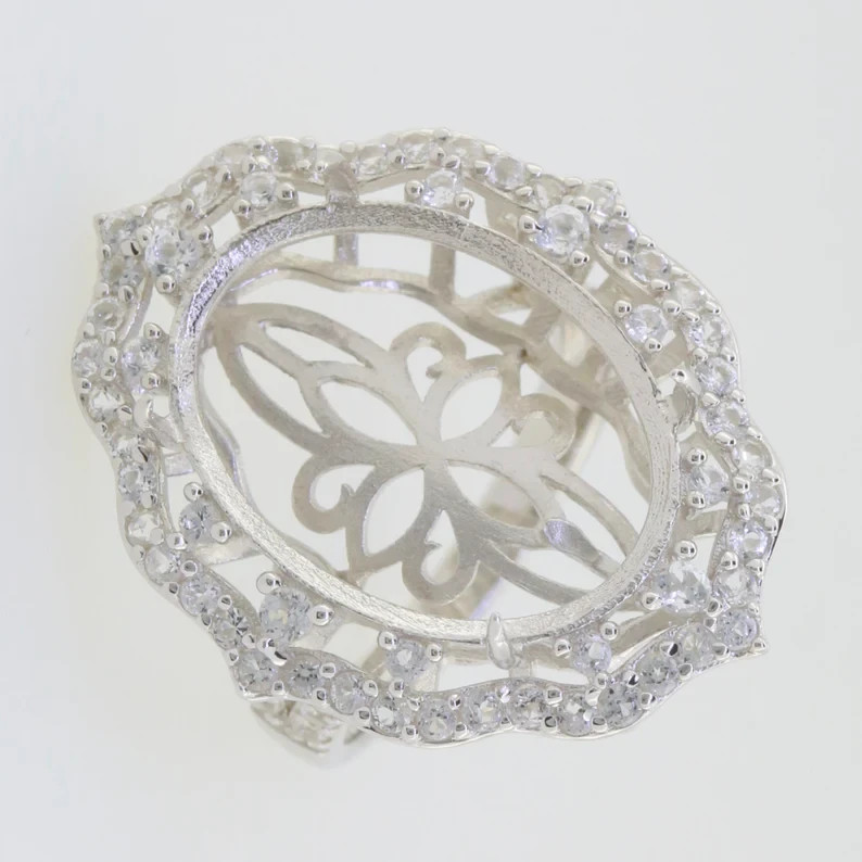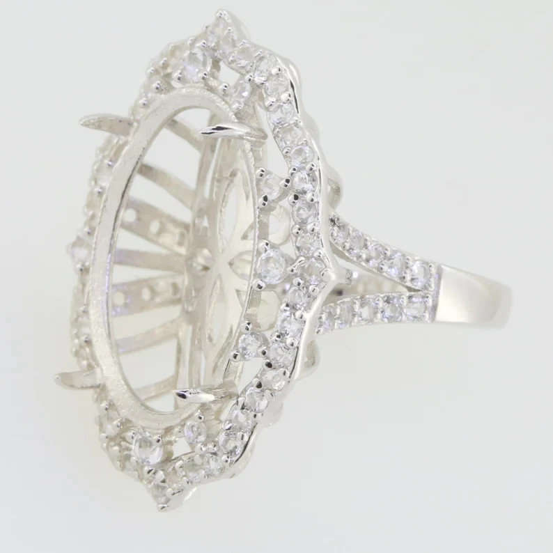 как выглядит 925 Sterling Silver Semi Mount Ring Setting Oval OV 18x13mm Halo W/ Moissanite фото
