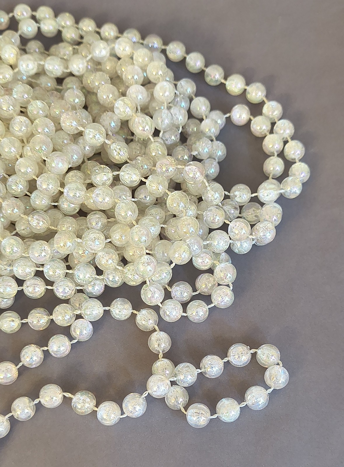 34 Ft Iridescent Beaded Christmas Garland, White/Clear, 416 Inch, Holiday