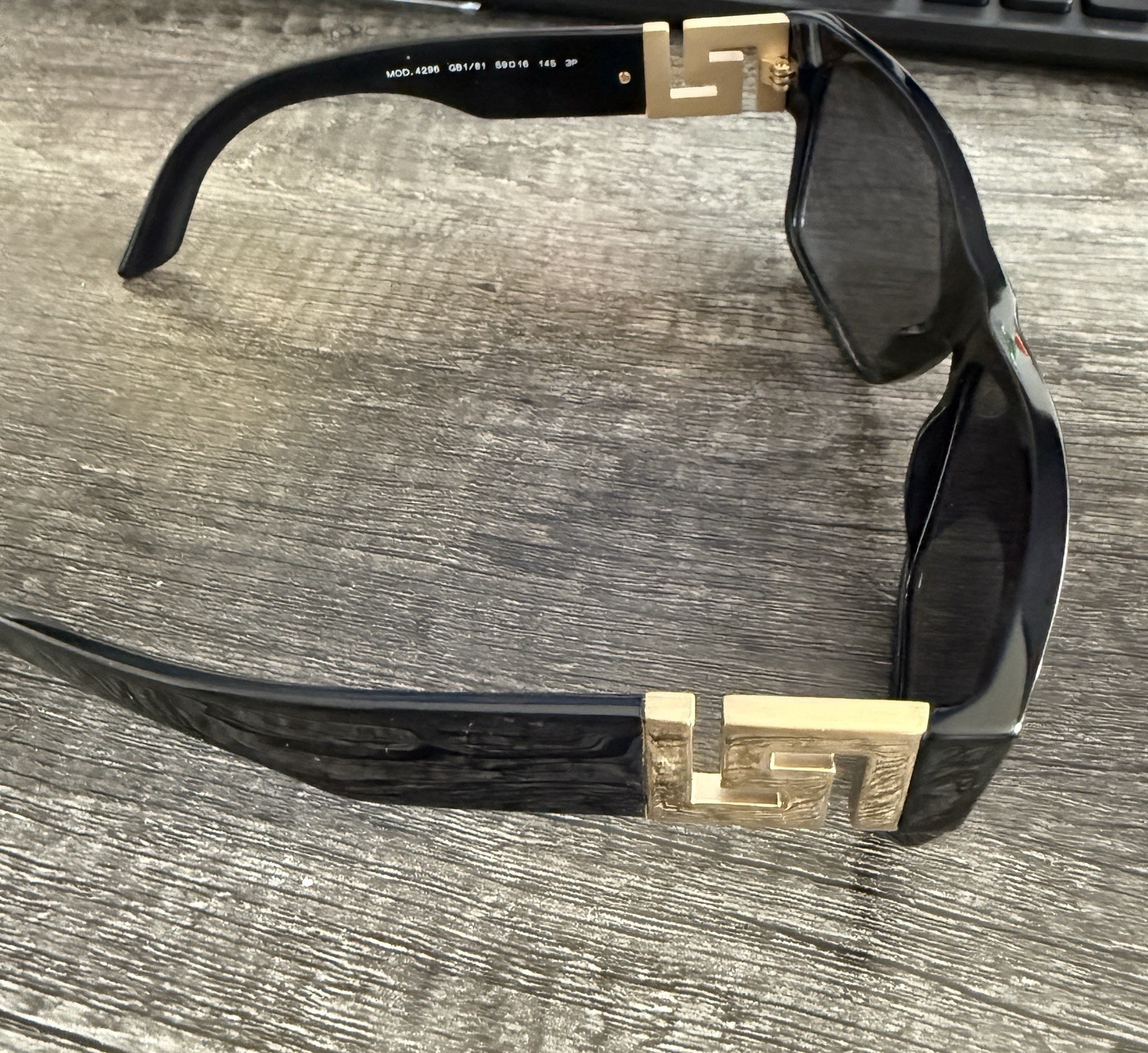 как выглядит Versace 4296 Womens Square Black Sunglasses Gray Tinted Lenses Gold Detail фото