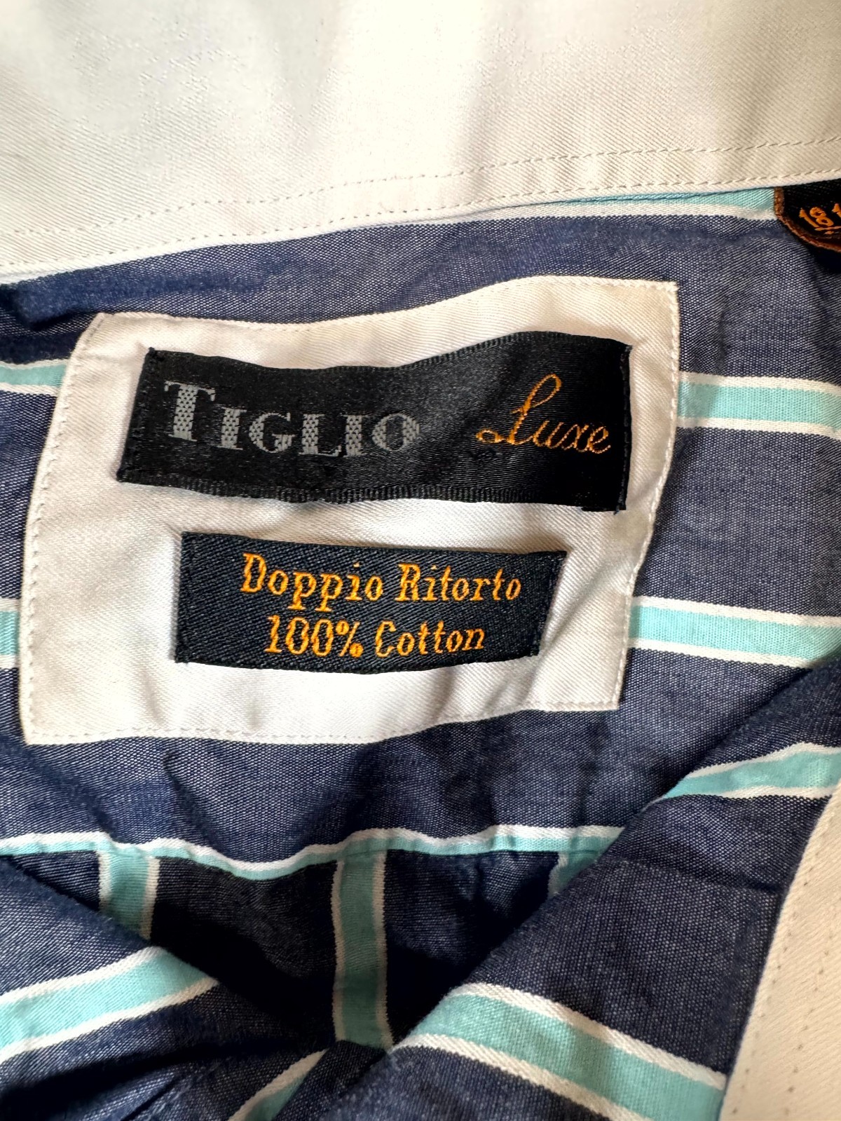 как выглядит Tiglio Luxe Doppio Ritorto Dress Shirt Mens 18.5 Blue Striped Cotton Business фото