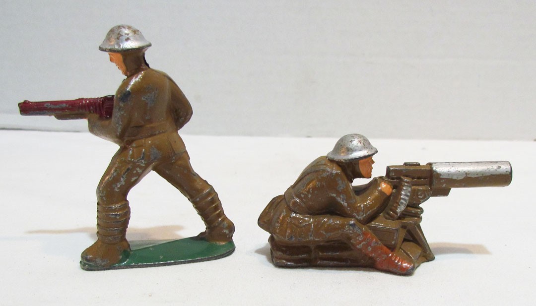 BARCLAY MANOIL TOY SOLDIERS M49 TOMMY GUNNER M41 MACHINE GUNNER SITTING 1930's