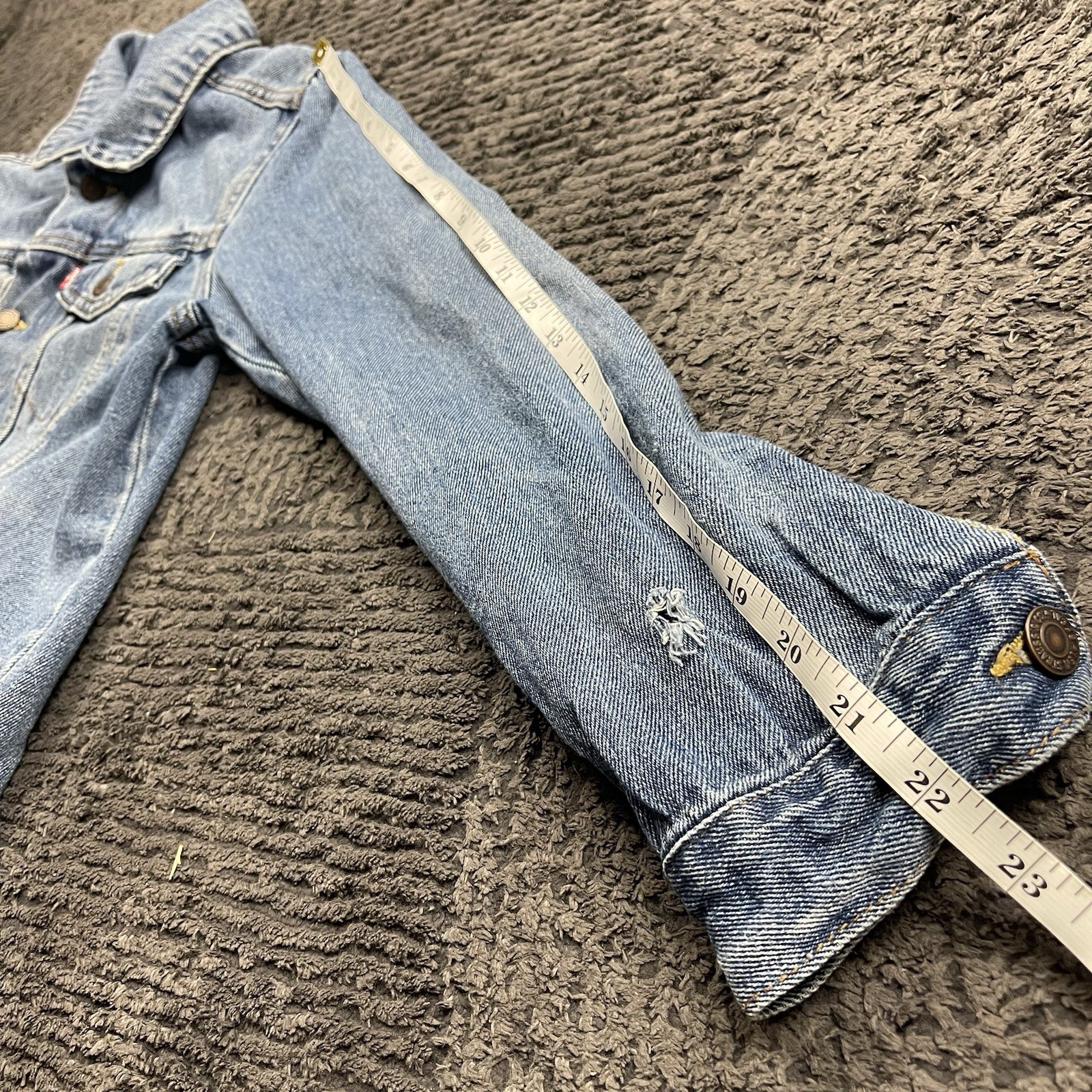 Levi's Strauss Co Denim Trucker Jacket Youth Size L Light Wash Distressed