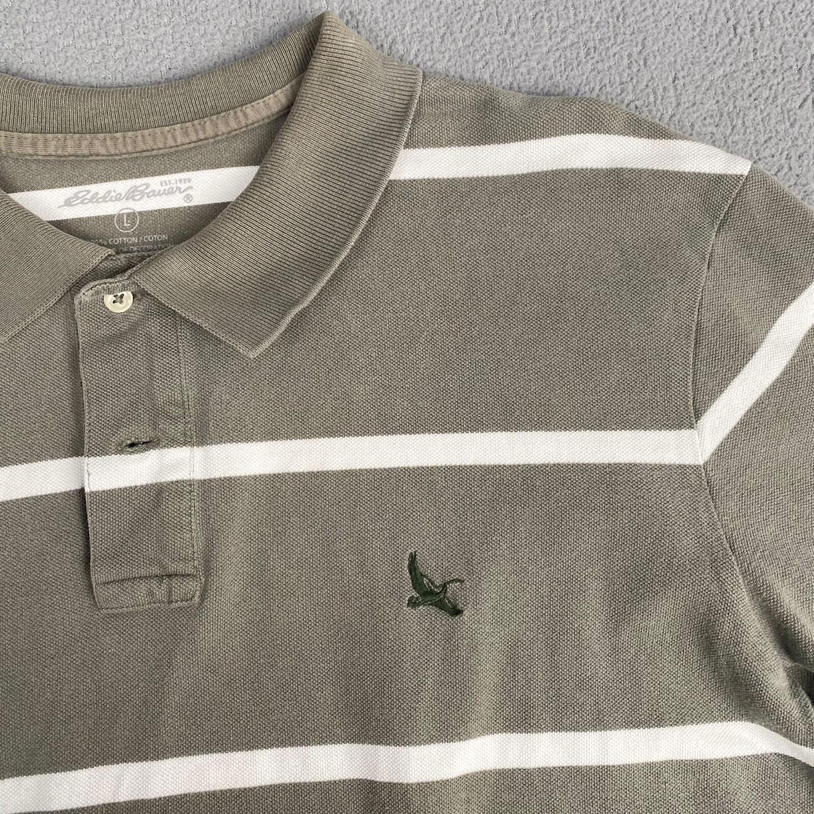 как выглядит Eddie Bauer Polo Shirt Mens Size L Short Sleeve Green Casual 100 Cotton фото
