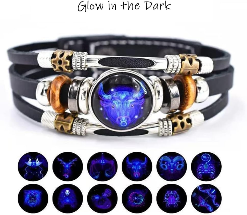 2Pcs Multilayer Constellation Zodiac Leather Bracelet Handmade Woven Zodiac S...