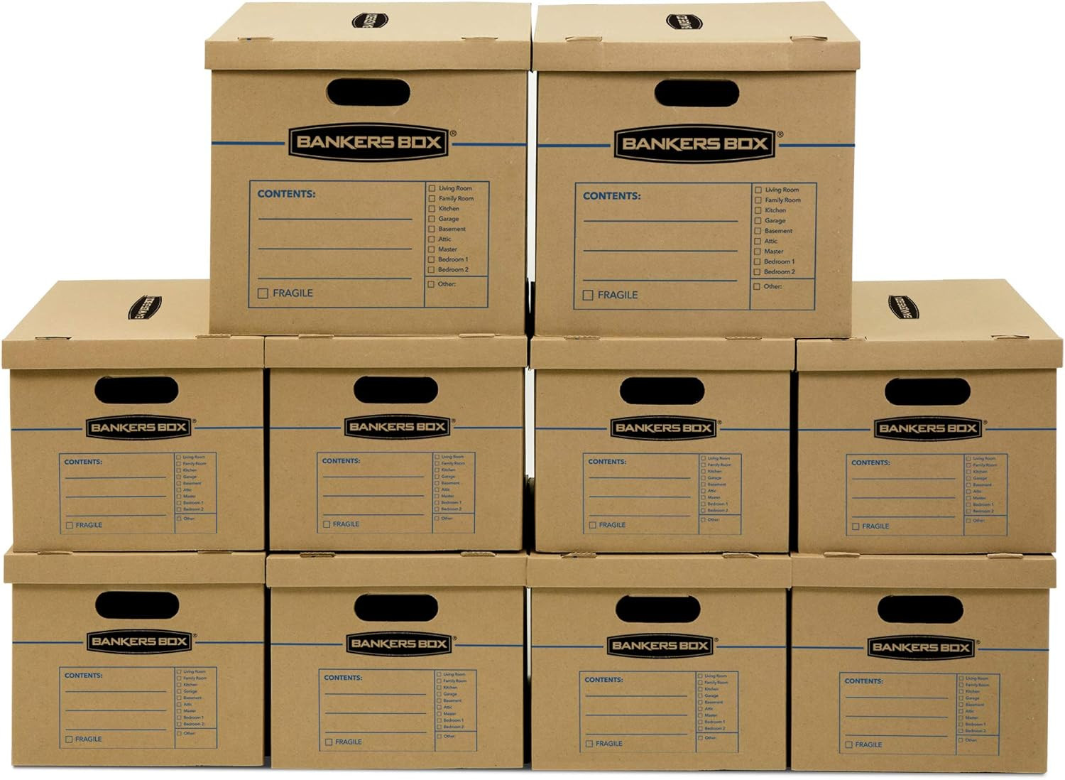 Classic Moving Box 10 Pack Kit, Reinforced Handles, Tape-Free Assembly, Box with