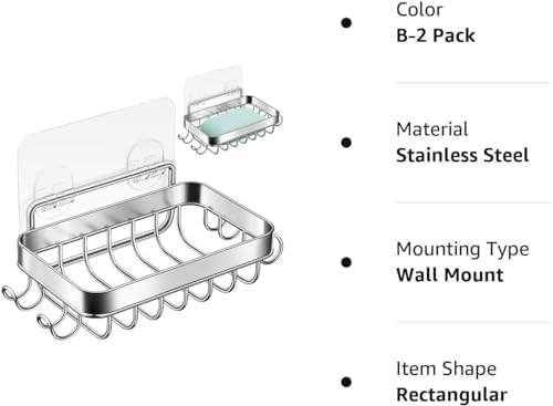 как выглядит 2 Pack Shower Wall Soap Dish Holder Wall Mounted Draining Soap Saver for Bath... фото