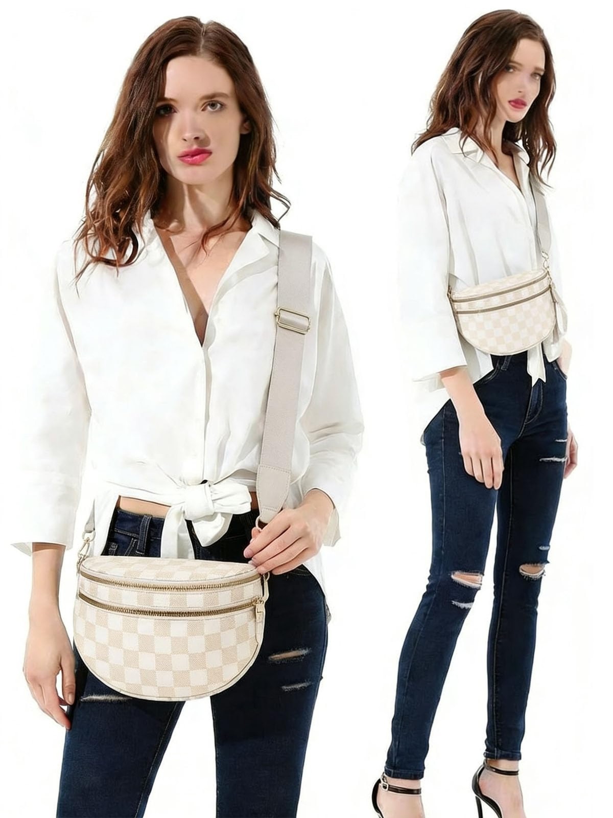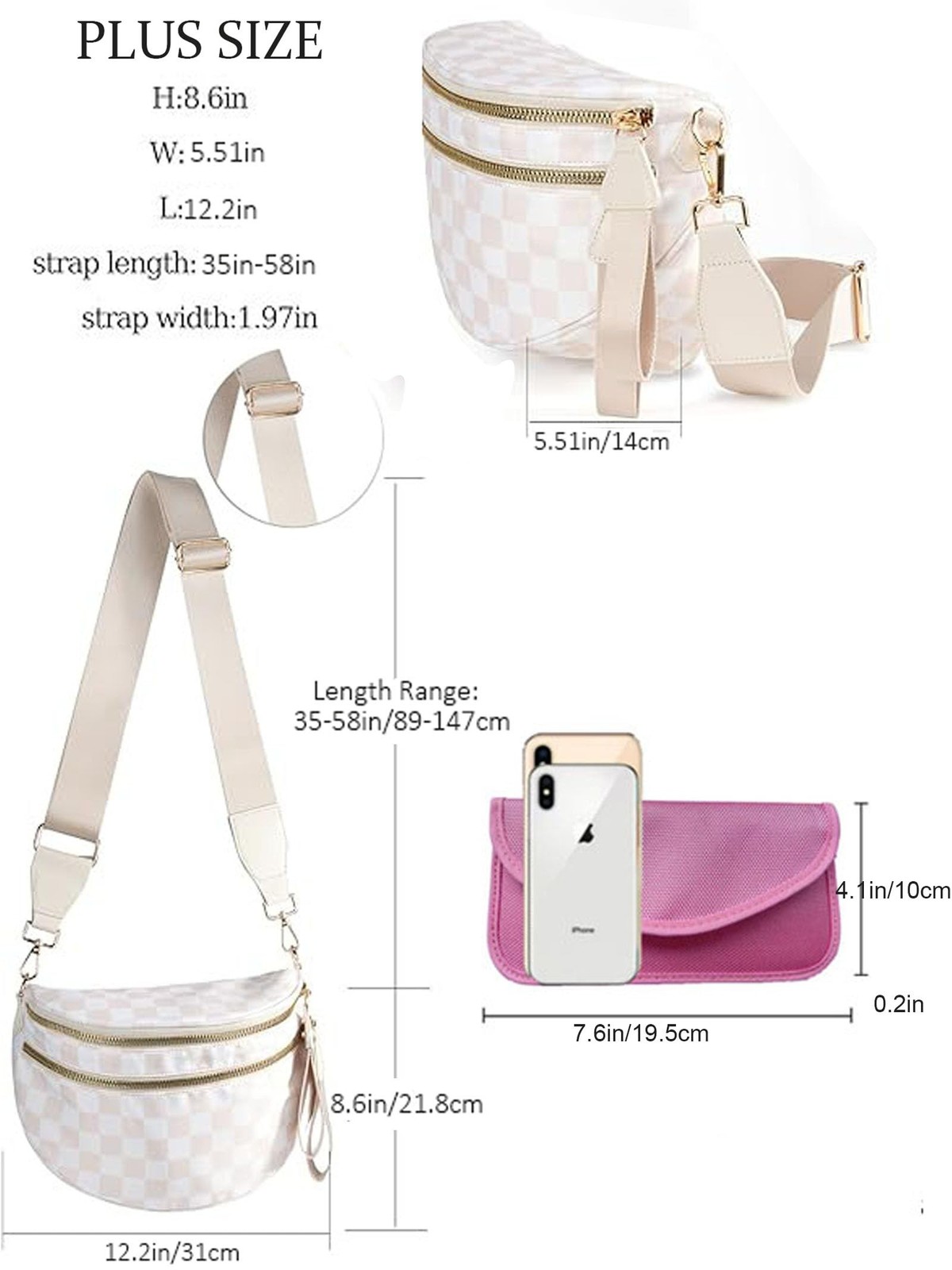 HPvyboshut Checkered Bum Bag/Spacious Nylon Crossbody Bags for Women/with Sig...