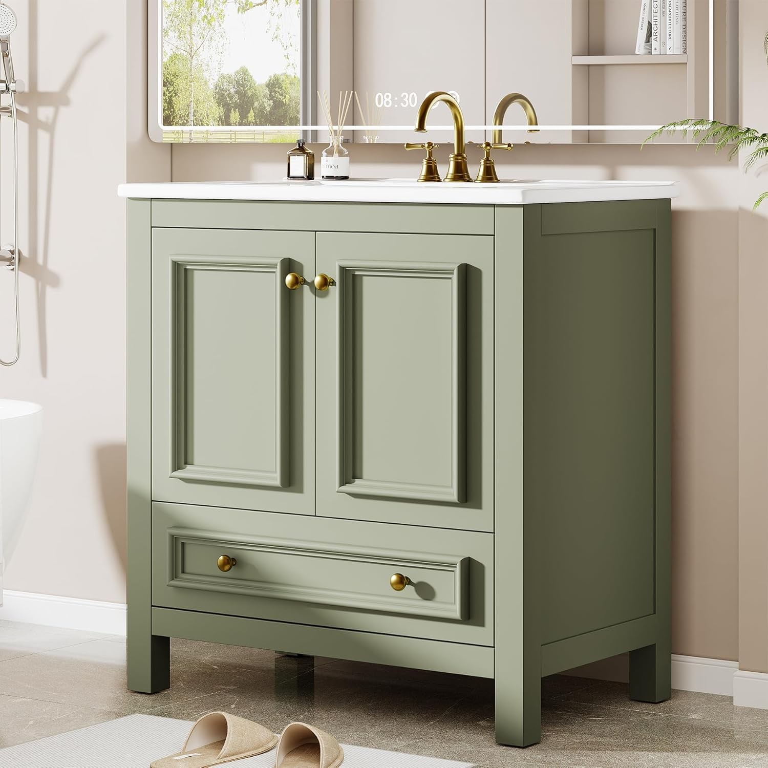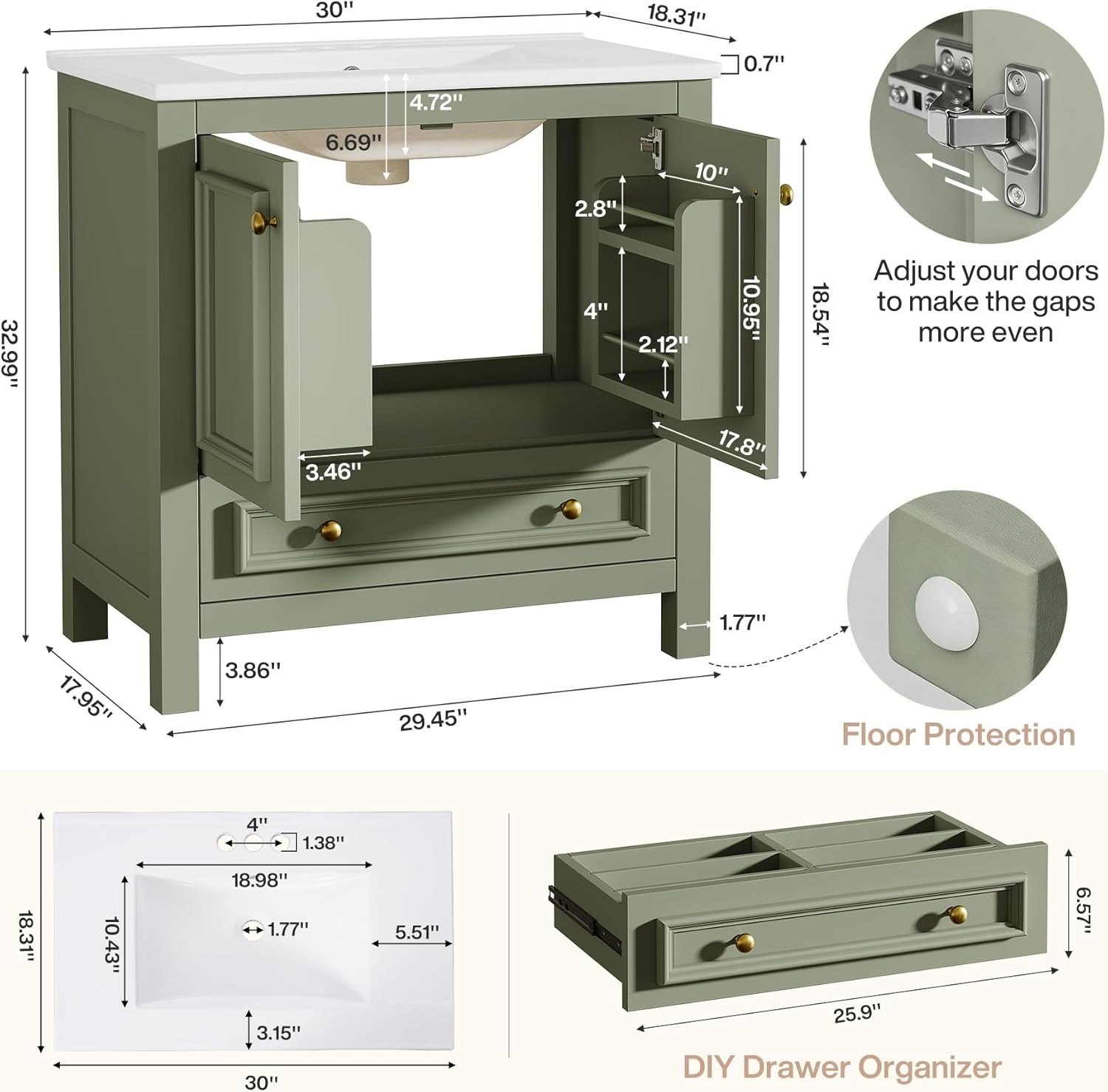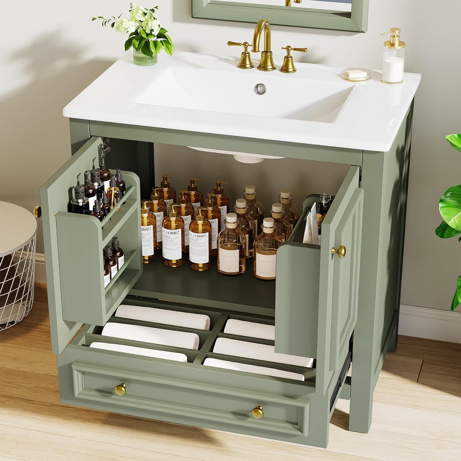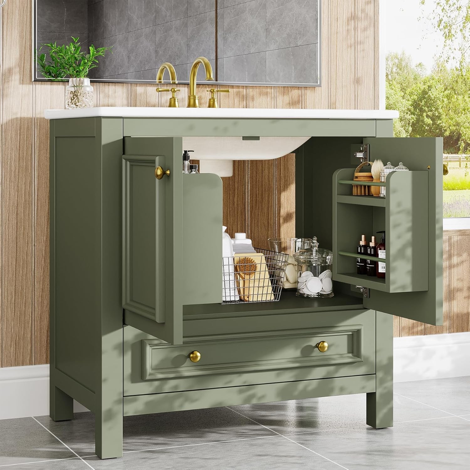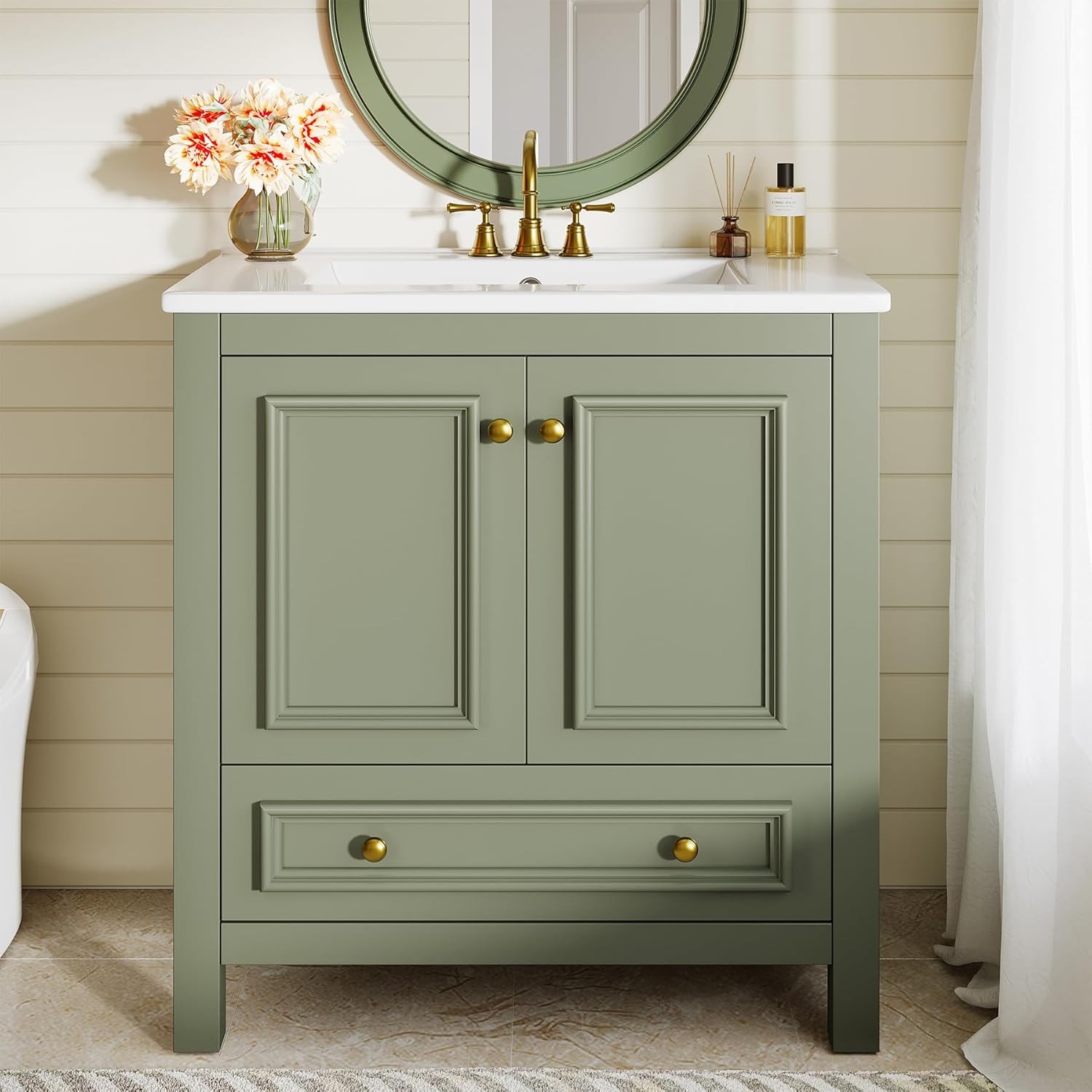 30 Bathroom Vanity with Sink with 1 Drawers 2 Doors, Bathroom Sink Cabinet