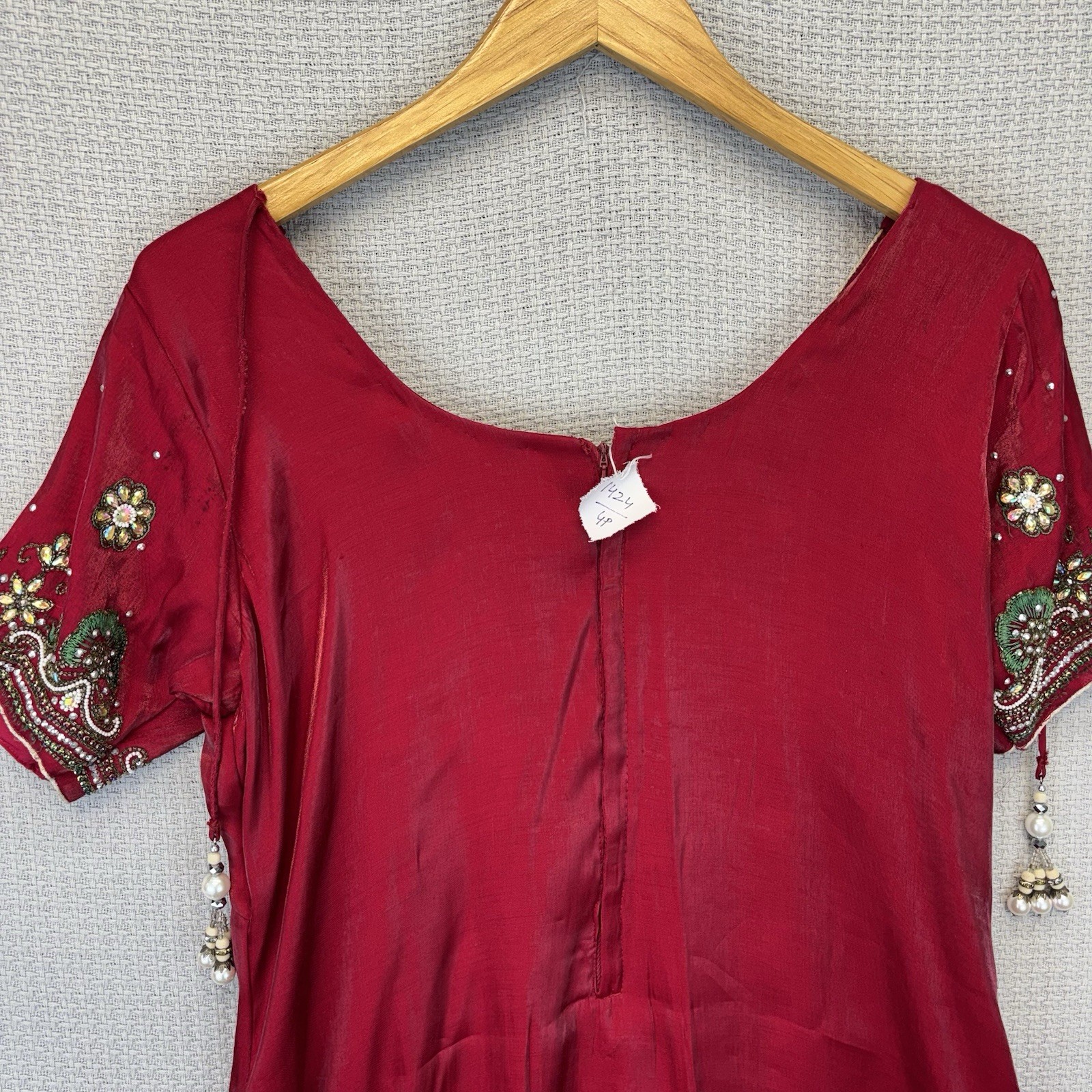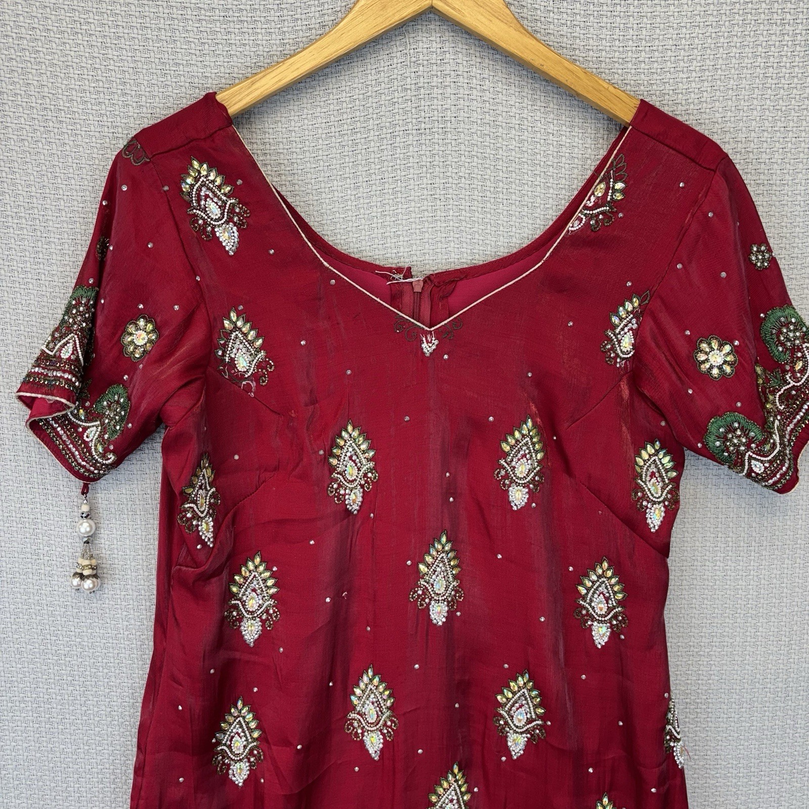 как выглядит Indian Pakistani Womens Red Heavily Beaded Kurti Kurta Tunic Dress S 4 Wedding фото