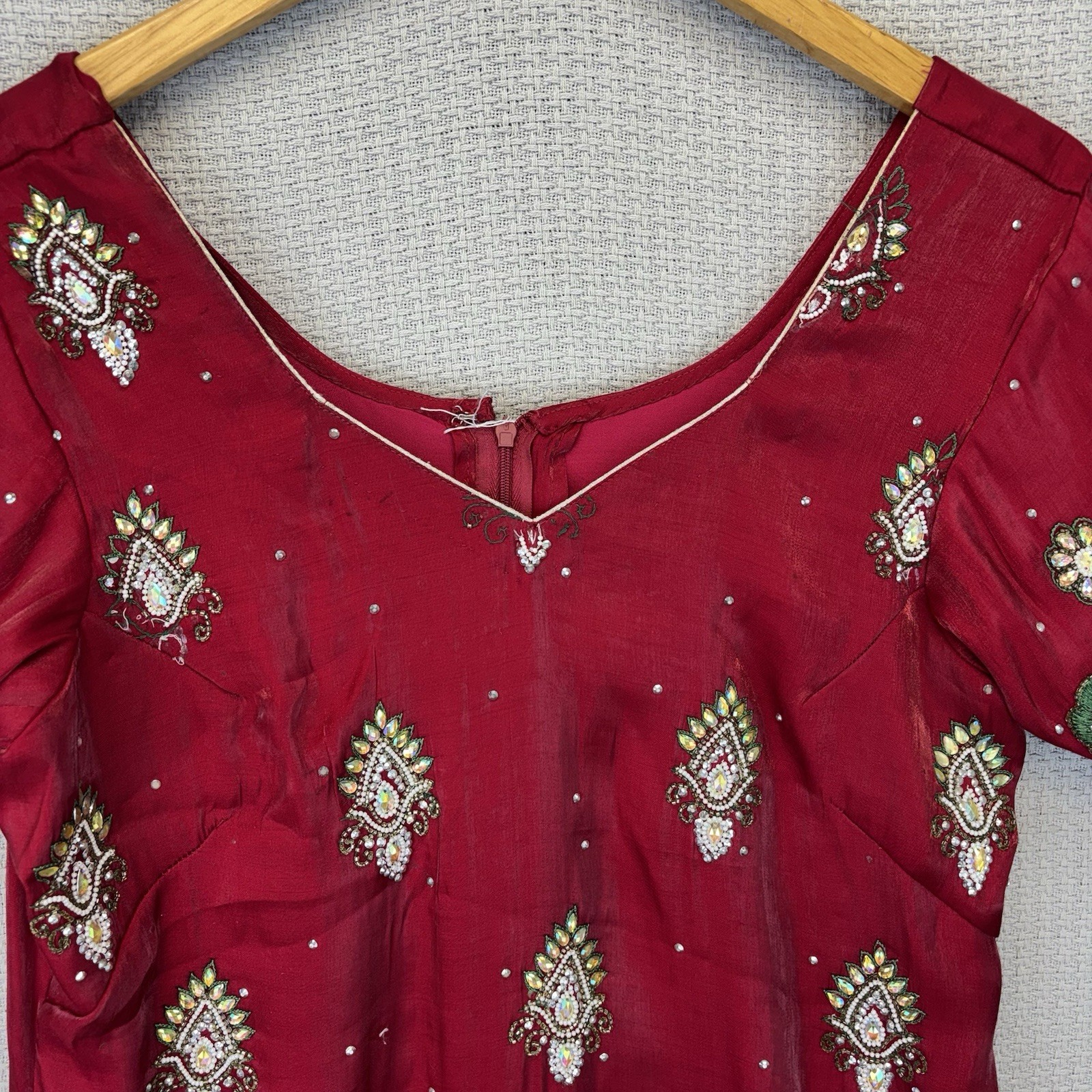 Indian Pakistani Women's Red Heavily Beaded Kurti Kurta Tunic Dress S 4 Wedding