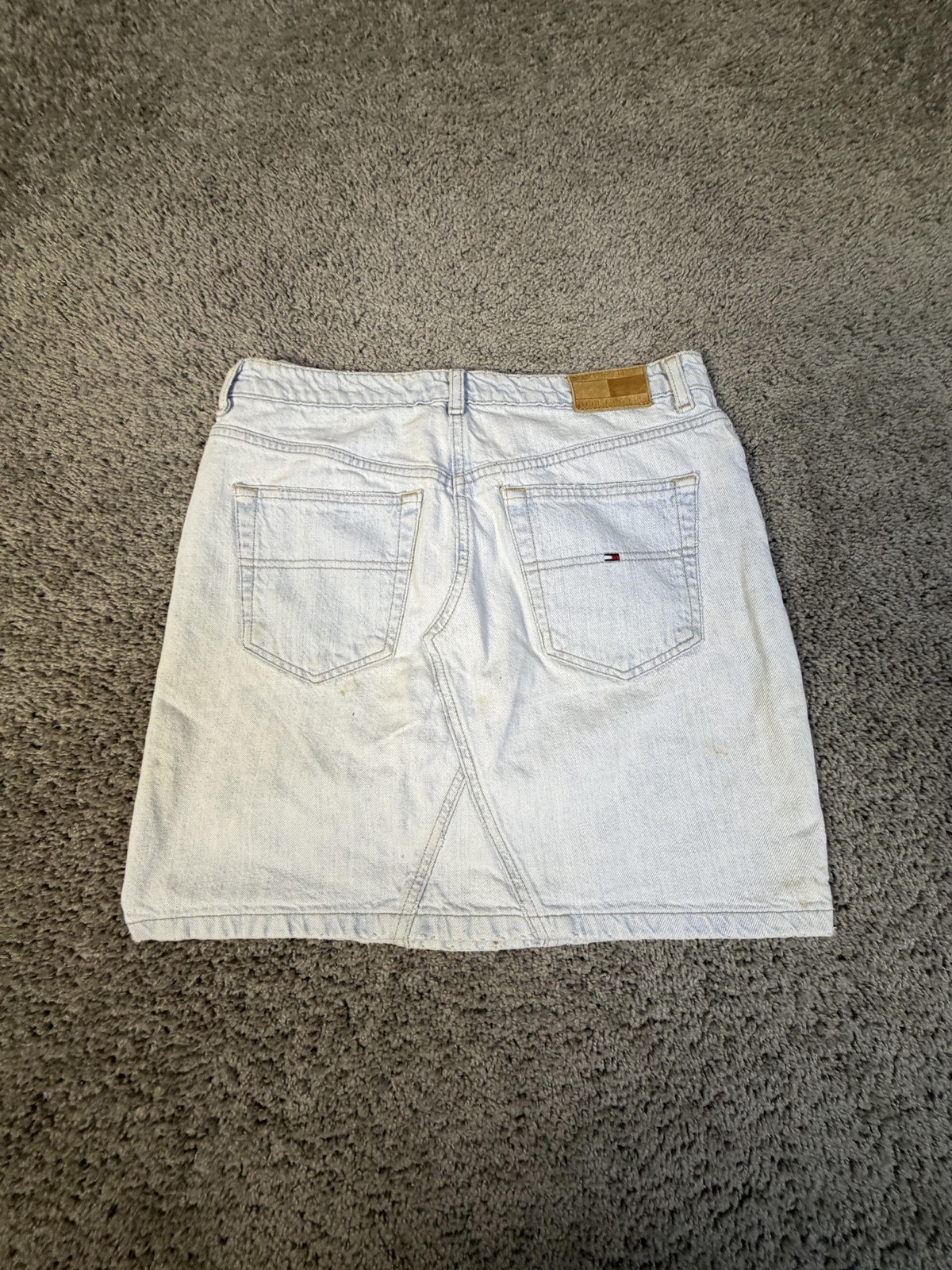 как выглядит VTG Tommy Hilfiger Skirt Womens 6 Light Blue Denim Straight Short 5-Pocket Logo фото