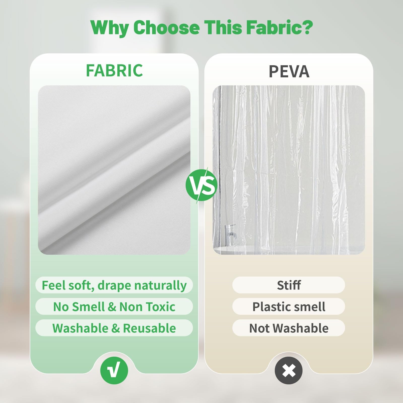 Waterproof Fabric Shower Curtain Liner with 3 HeavyDuty Magnets Washable Whi...