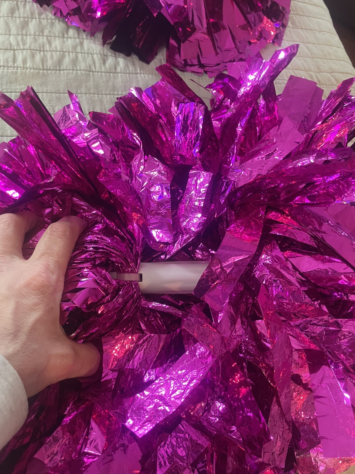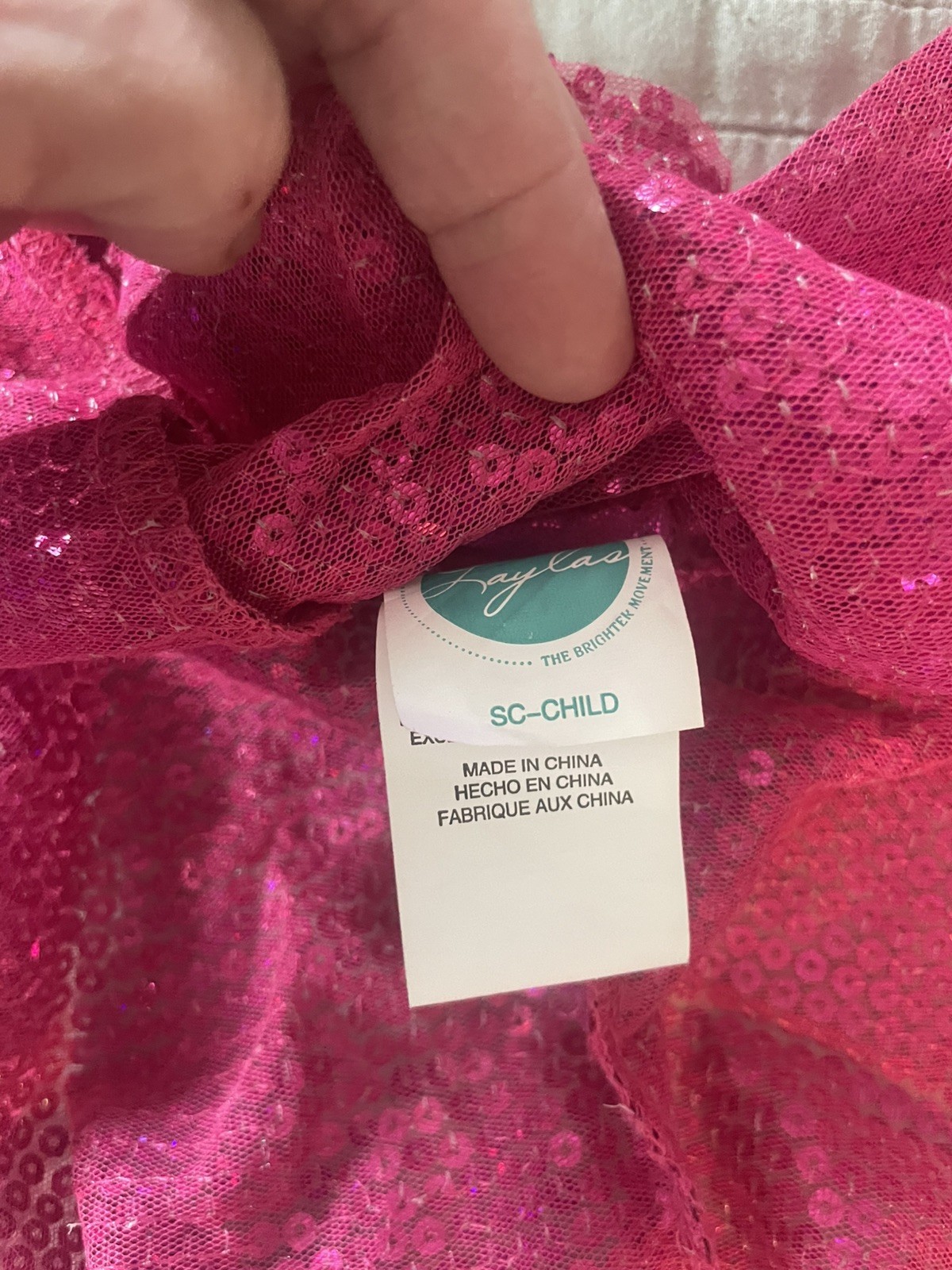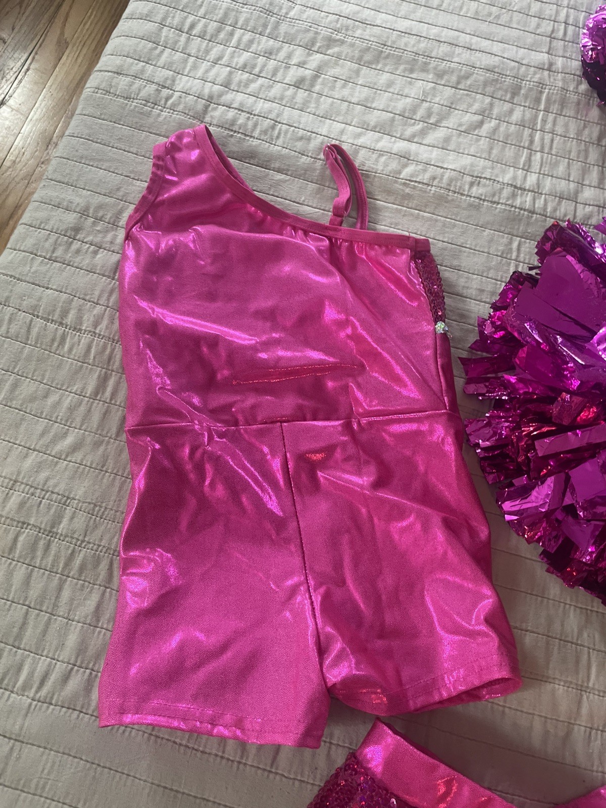 laylas dance tumbling costume, size SC-child hot pink with Pom poms