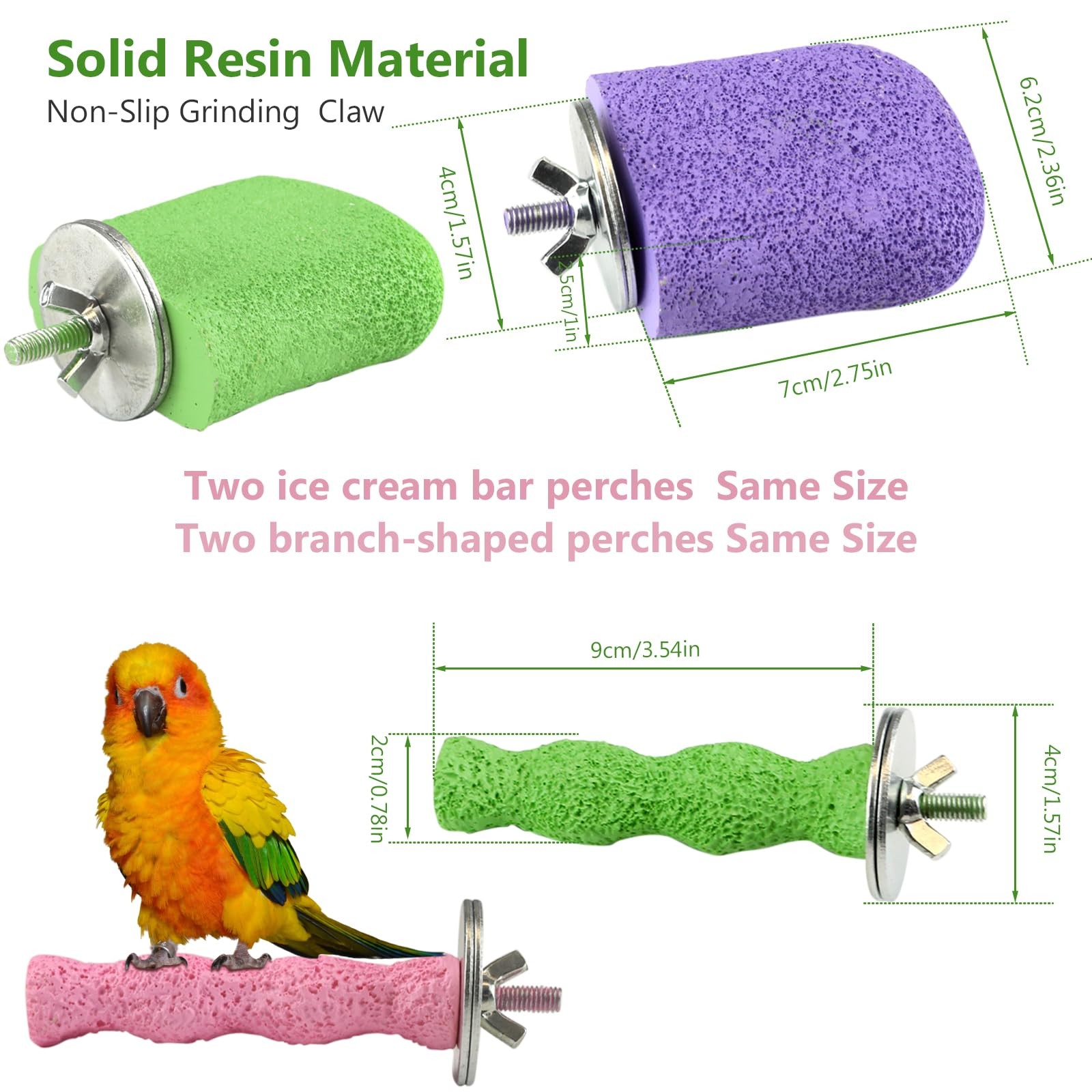 Included Components: 2Pcs Ice Cream Bar Perches And 2Pcs Branch-Shaped Perches