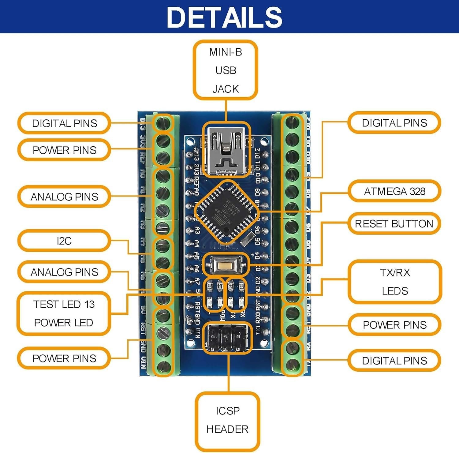 Complete 2PCS ATmega328P Nano V3.0 Arduino Microcontroller with USB Connectivity