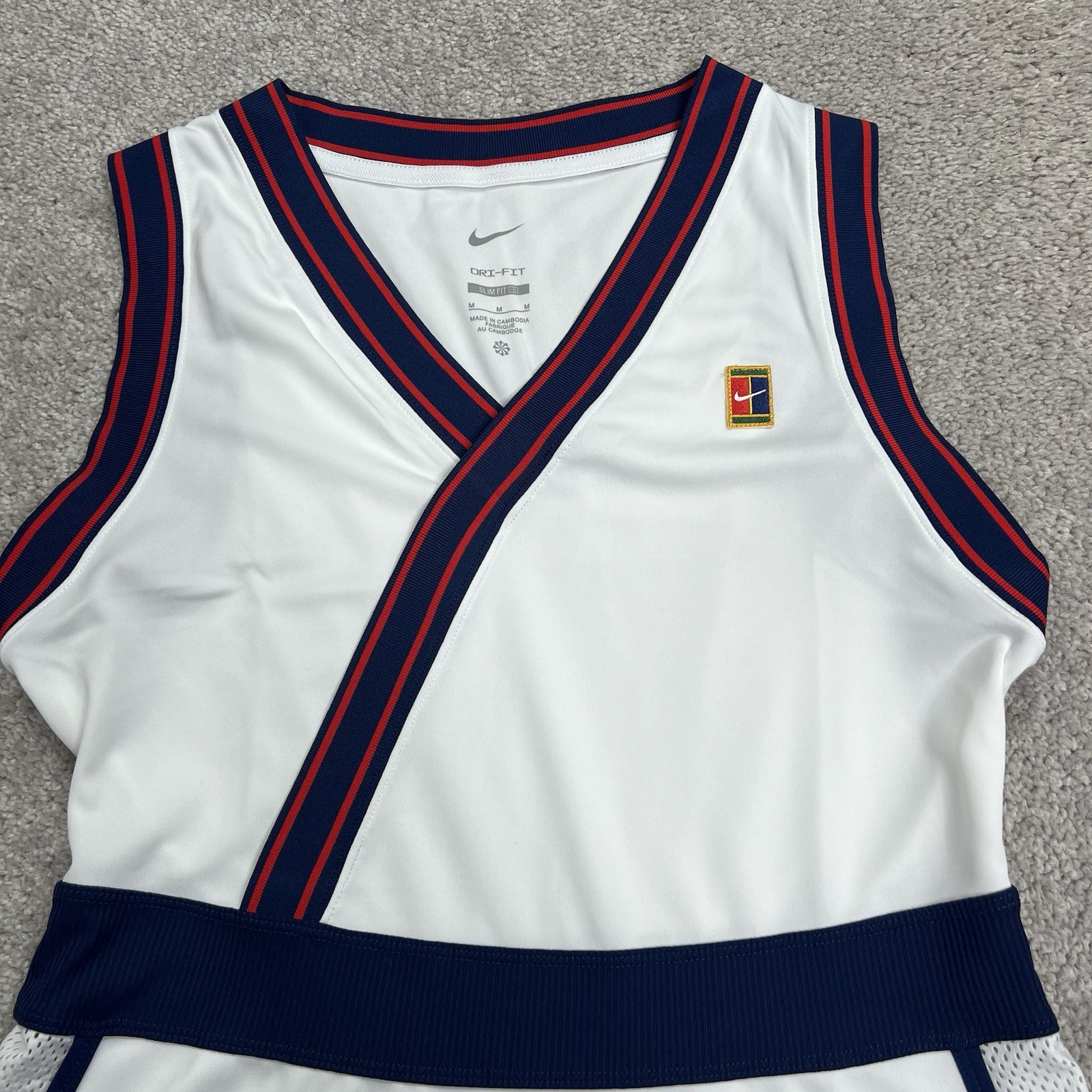 Nike Court Dri-Fit Slam Tennis Dress Women Size Medium White Blue Red DA4716-100