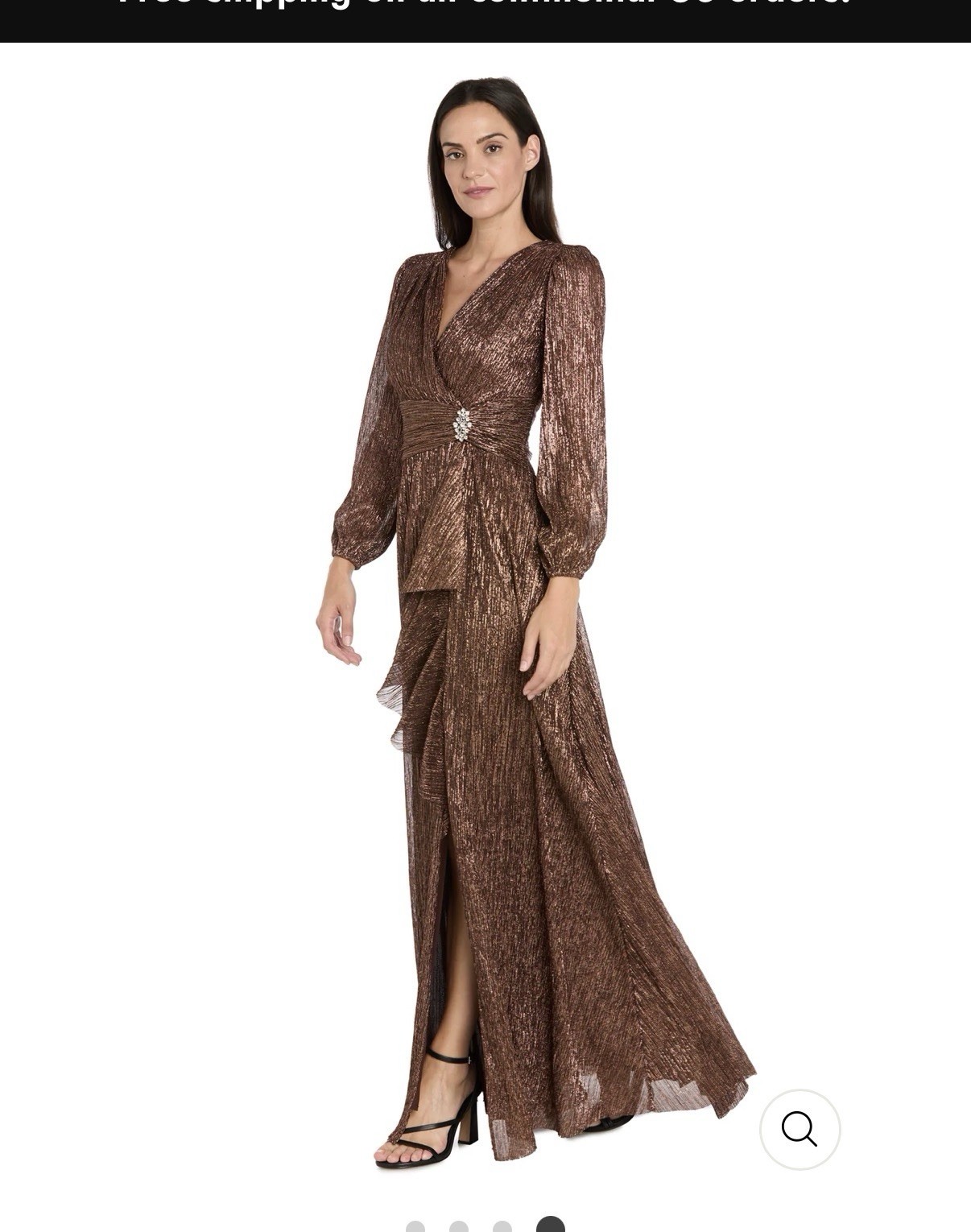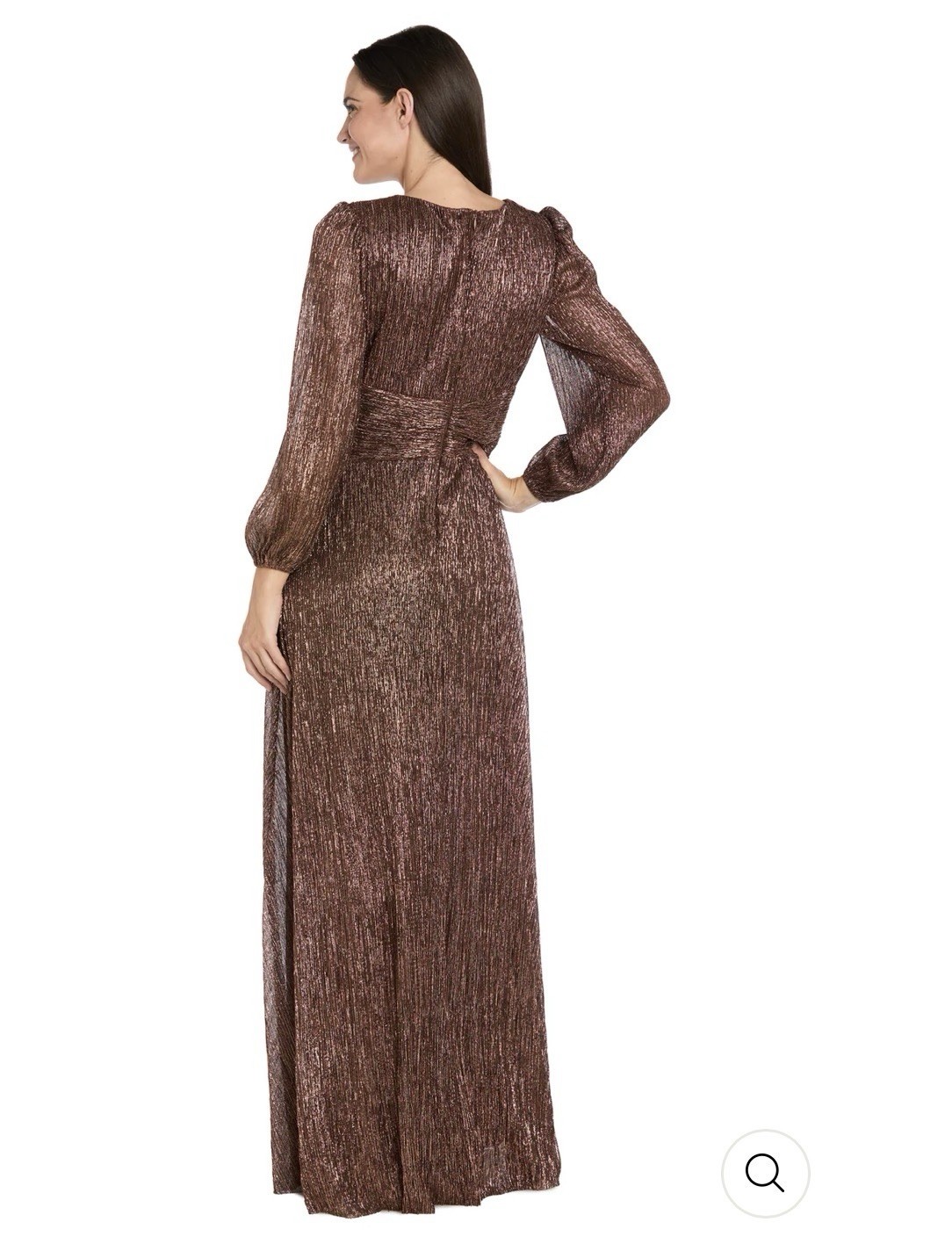 как выглядит R M Richards Crinkle Pleated Bronze Evening Gown 3/4 Sleeve V-Neck Size 16 W фото
