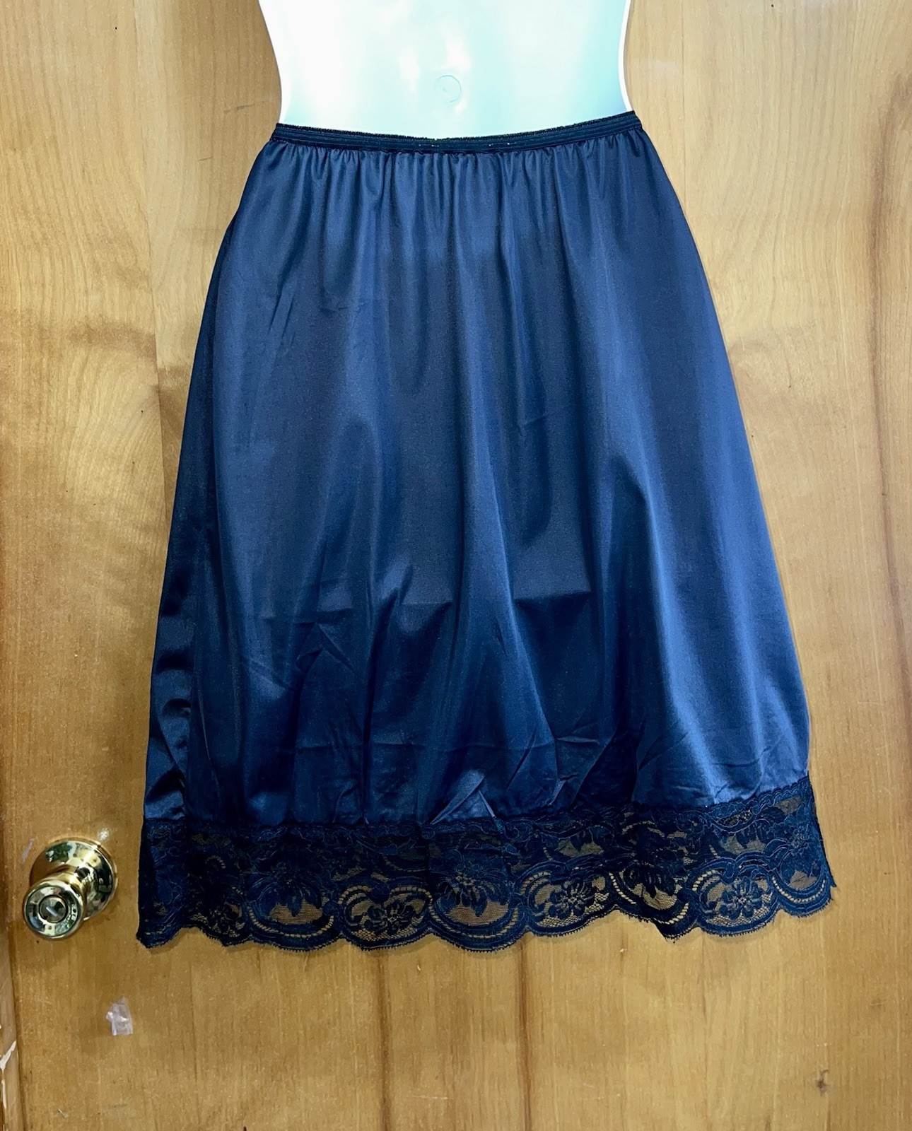 как выглядит Vintage Hollywood Vassarette Black Nylon Half Slip Petticoat Wide Lace Trim M фото