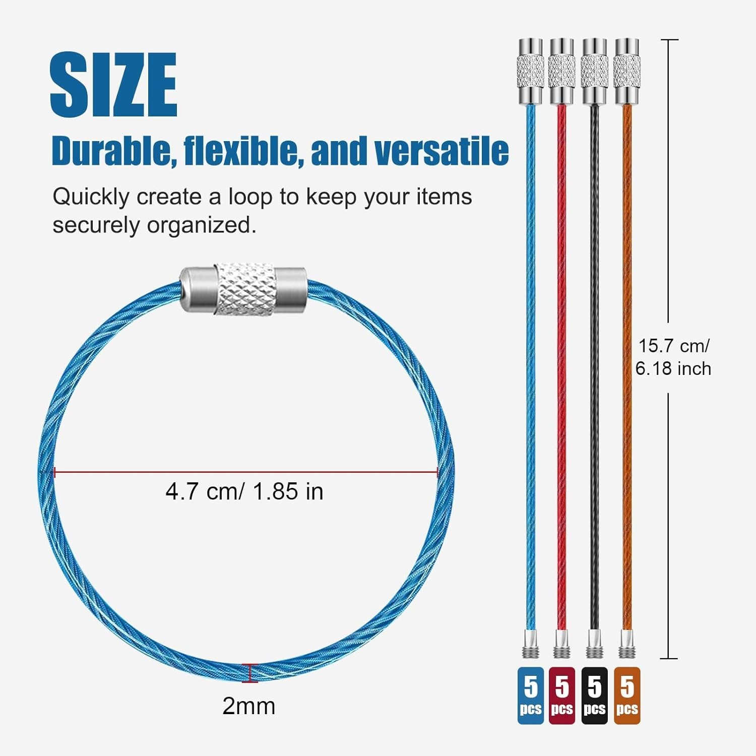 20Pcs Stainless Steel Wire Keychains Aircraft Cable Cable Key Ring for Hanging I