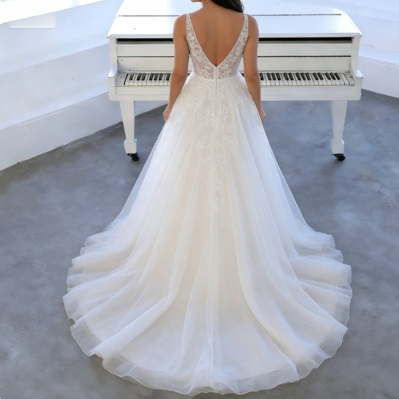 Elegant Plus size Lace Appliques Wedding Dresses Sleeveless V Neck Bridal Gowns