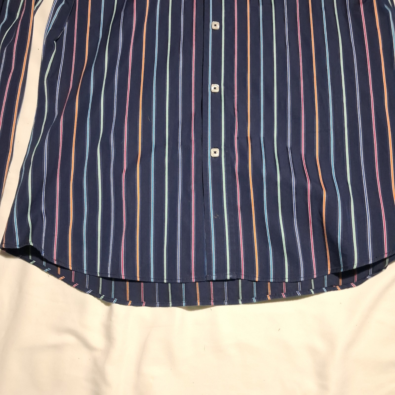 Bugatchi Uomo Flip Cuff Striped Dress Shirt Long Sleeve Button Up L Purple Blue