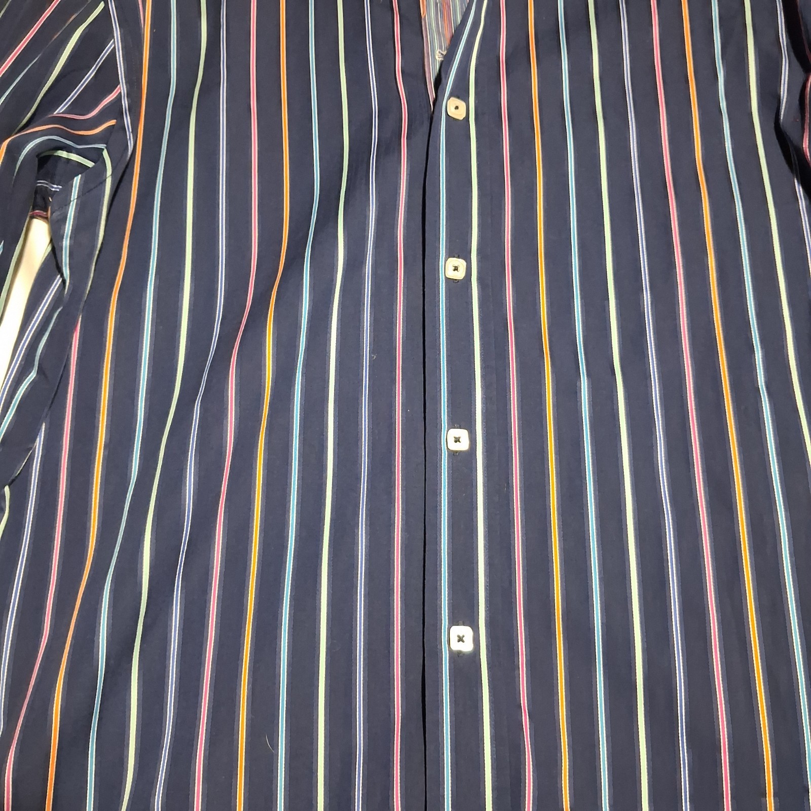как выглядит Bugatchi Uomo Flip Cuff Striped Dress Shirt Long Sleeve Button Up L Purple Blue фото