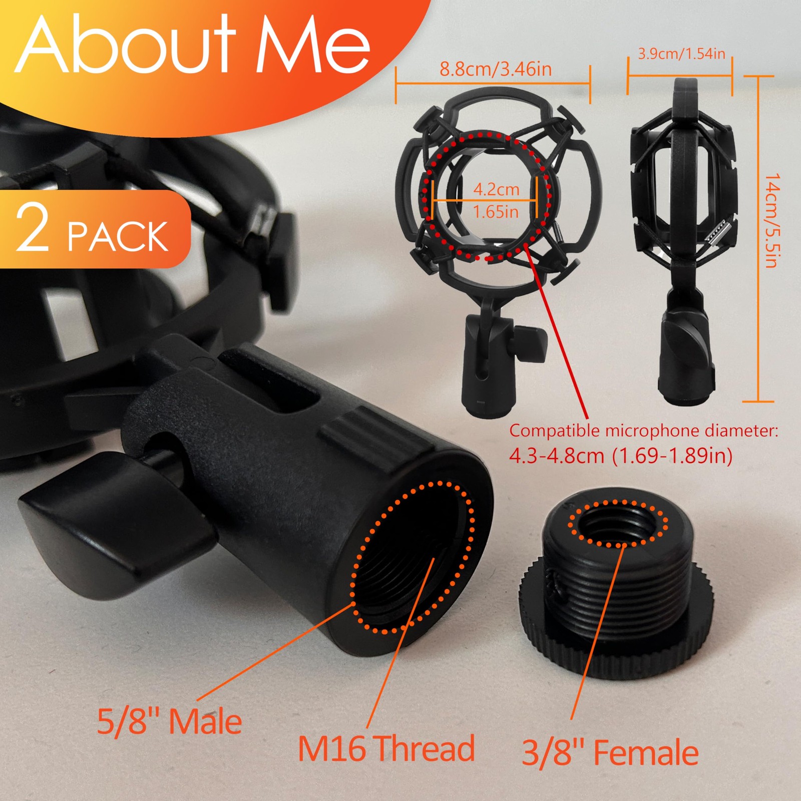 Microphone Shock Mount 2 PACK, Mic Holder Clip for 4348mm/1.69 1.9in Diameter...