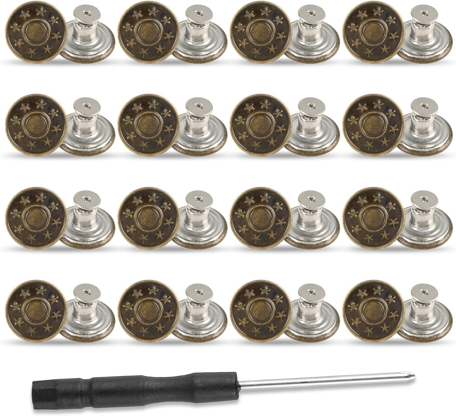 16 PCS Jeans Buttons, 20Mm No Sew Jean Button Replacement for Loose Jeans Trouse