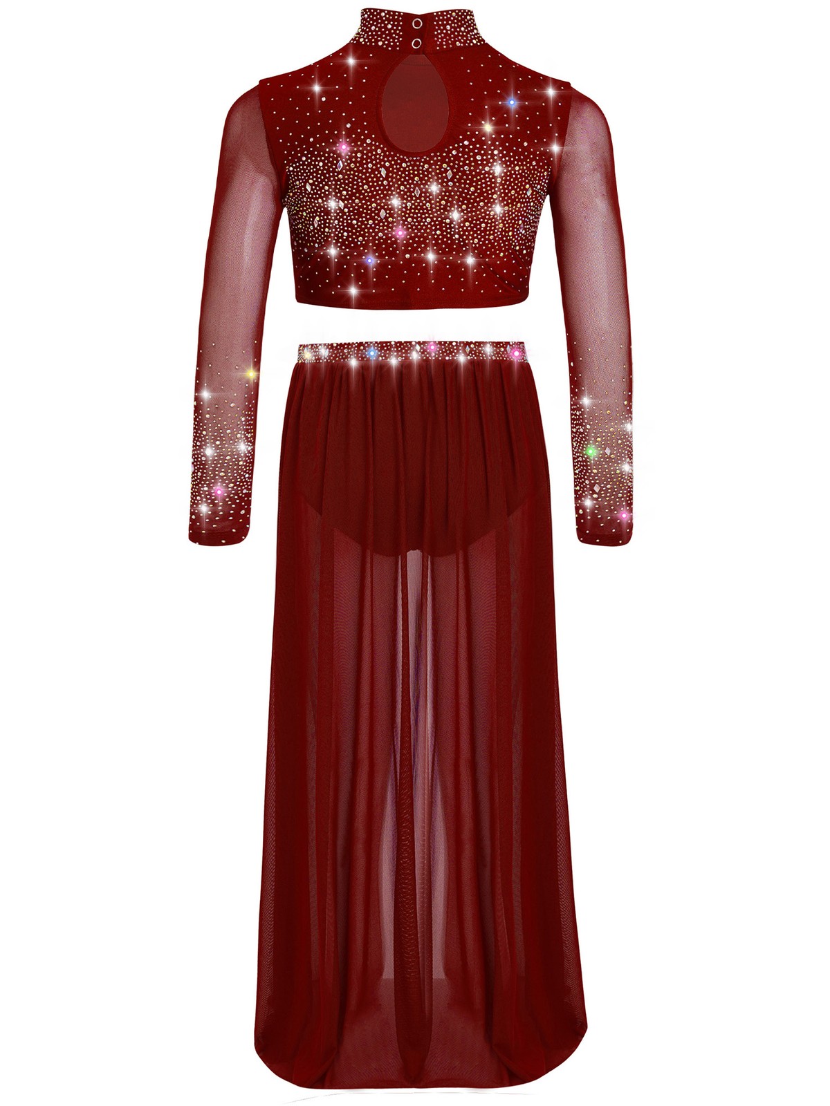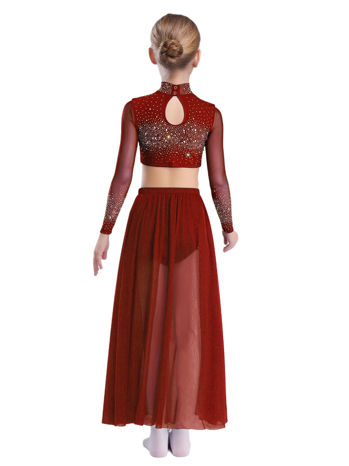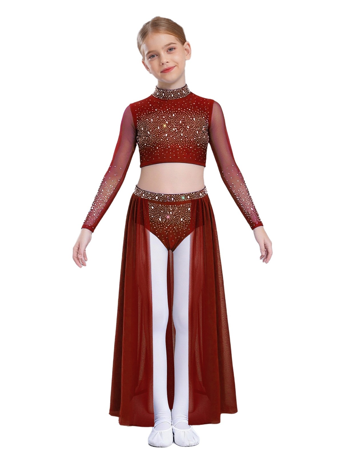 как выглядит Kids Girls Outfit Long Sleeve Costume Performance Set Shiny Dance Modern Stage фото