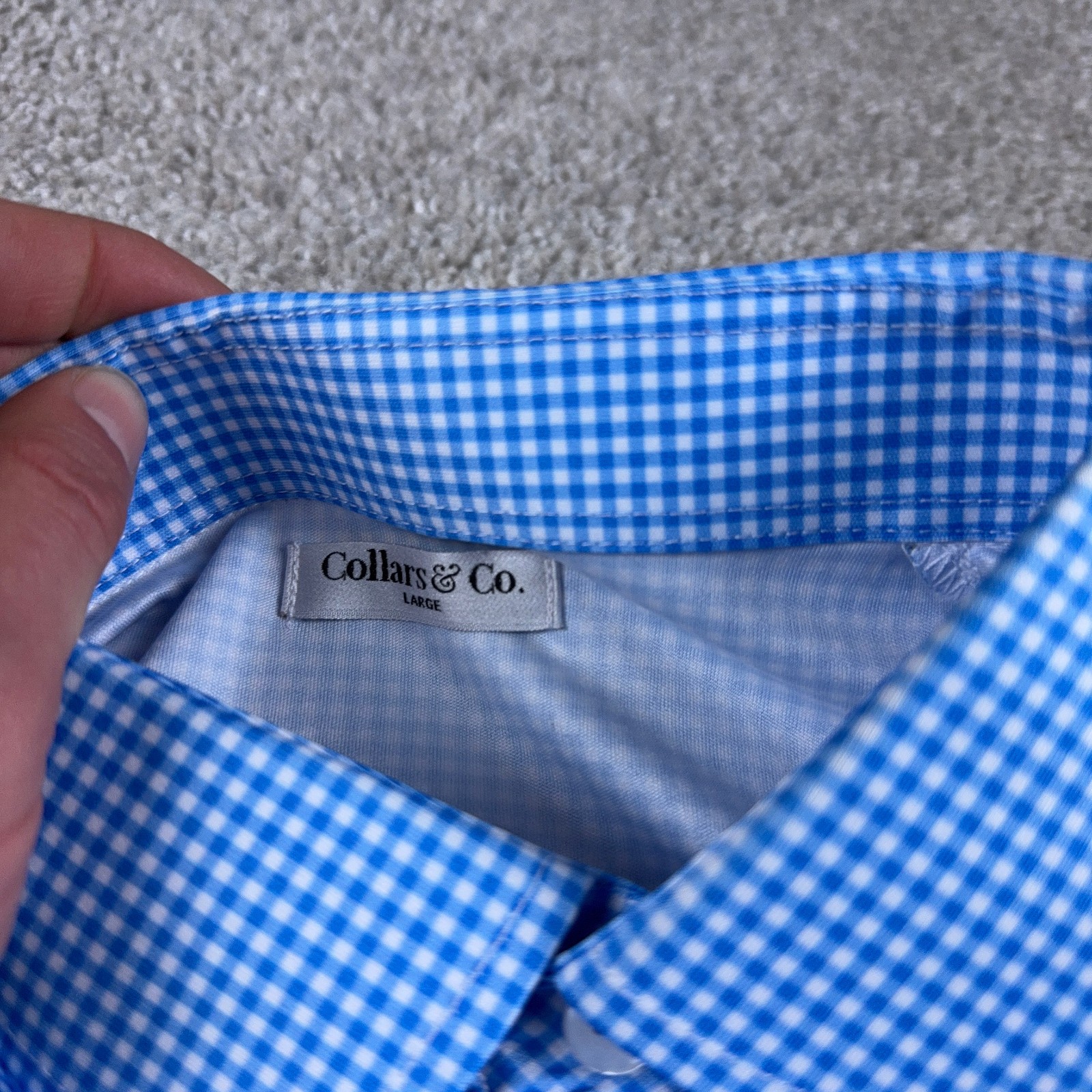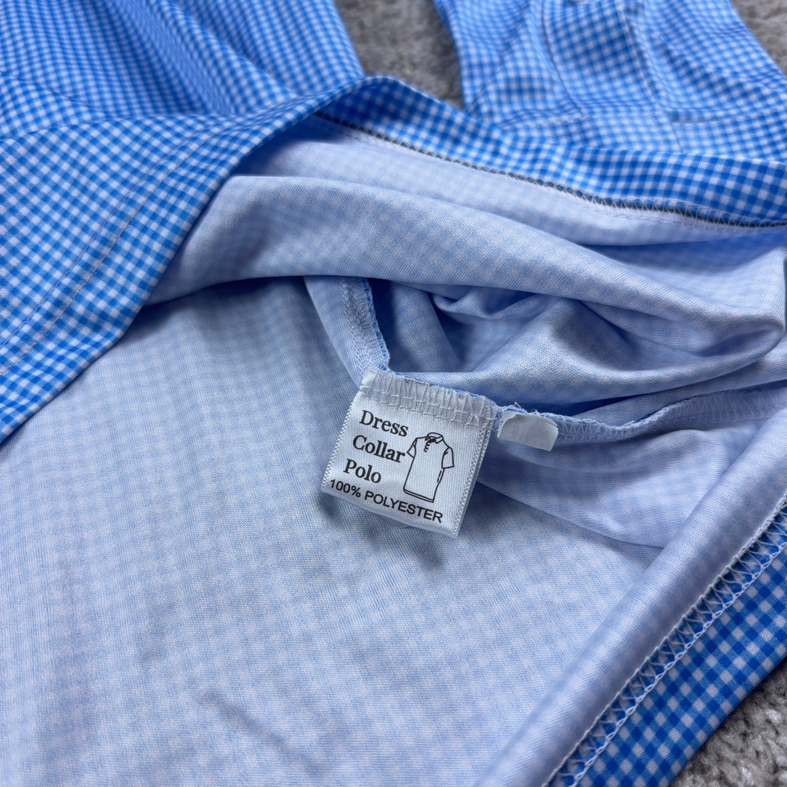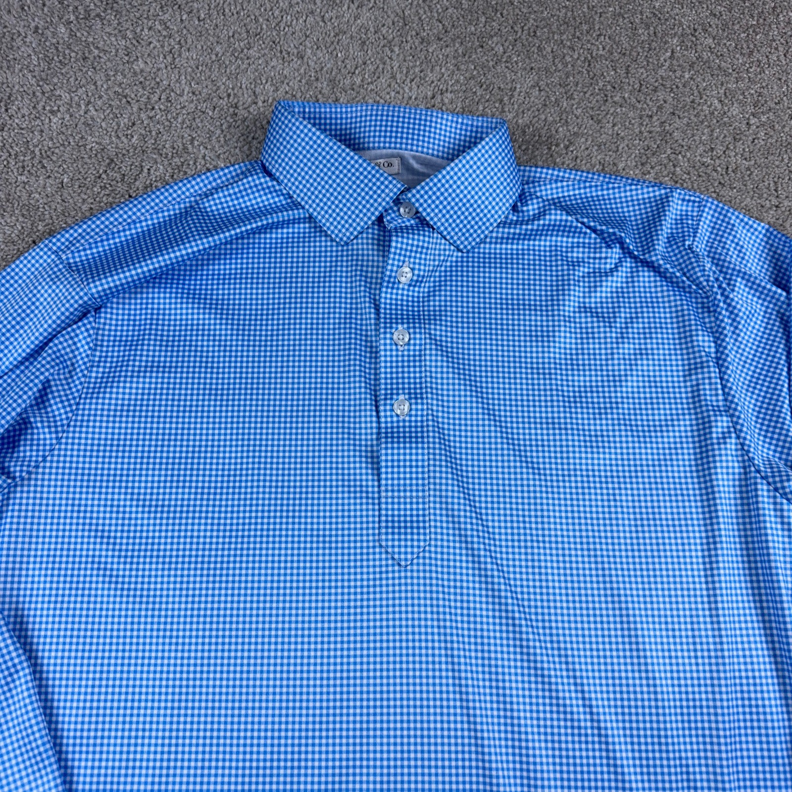 как выглядит Collars Co Polo Shirt Mens Large Blue Check Golf Performance Breathable Office фото