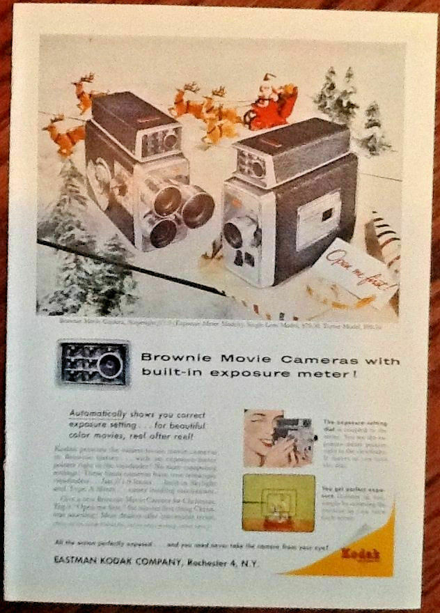 как выглядит 2 Kodak brownie movie camera ads 1958 1957 originl vintage retro 1950s Christmas фото