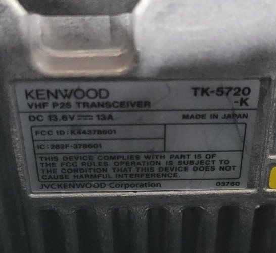 Kenwood TK-5720-K VHF P25 Transceiver with Mic, Antenna, Bag-Power Tested