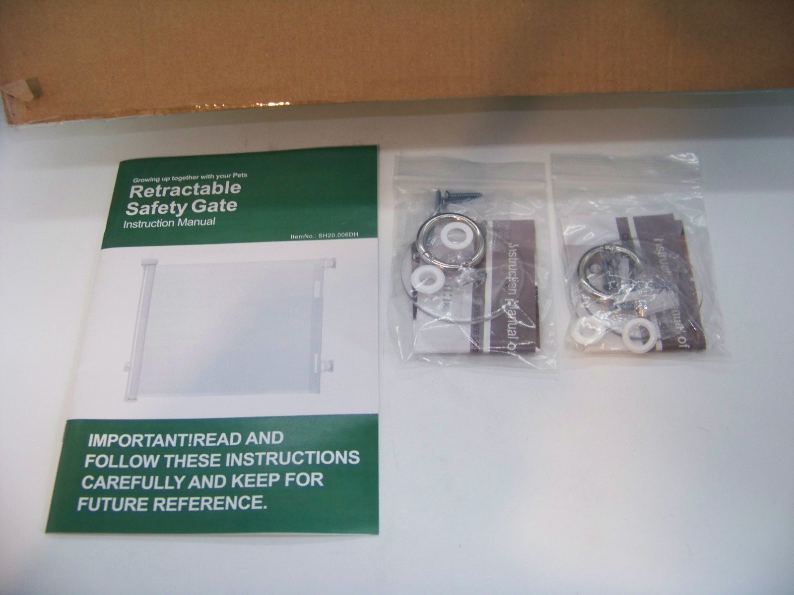 как выглядит 2 Pack Mesh Retractable Step Over Short Dog Gate 14" High up to 55" Wide White фото